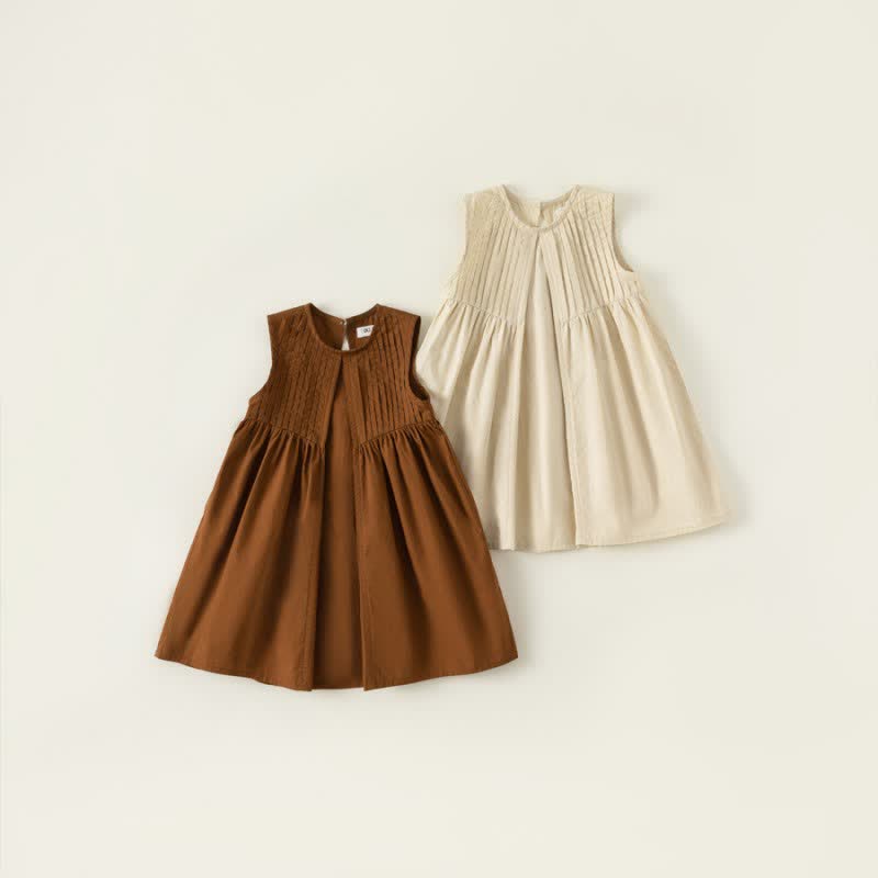 Toddler Girl Pleated Simple Sleeveless Dress
