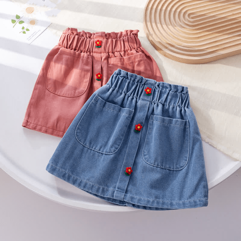 Toddler Girl Flower Denim Skirt