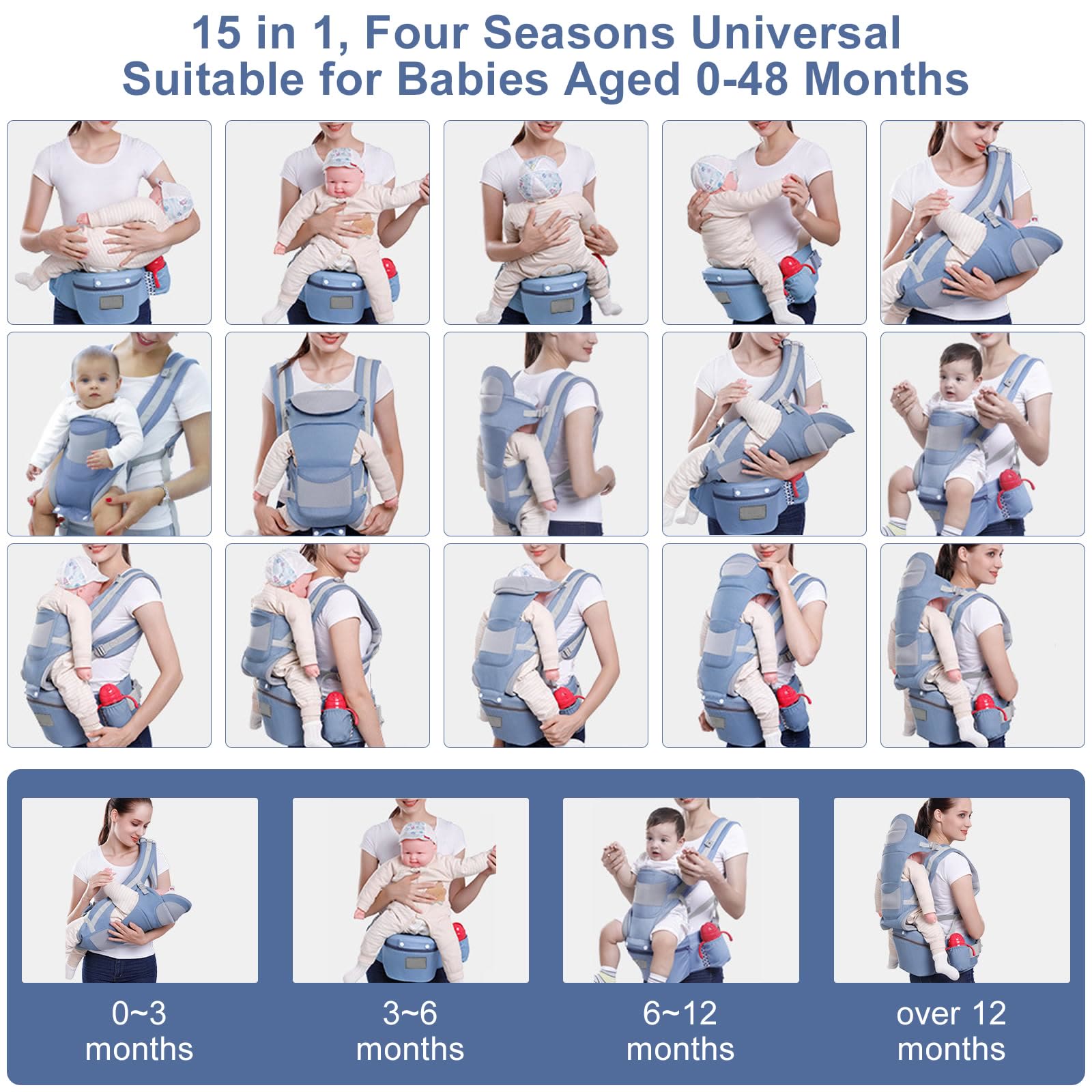 Safe Material: Breathable fabric keeps the skin dry. Adjustable hip seats provide the most comfortable posture for the baby. With superior padding in our adjustable straps and ergonomic comfort support for both you and your child, you can say goodbye to back pain and other hip and shoulder-related carrying issues. You can rest assured that your baby is sitting pretty in style and comfort no matter how you carry it!