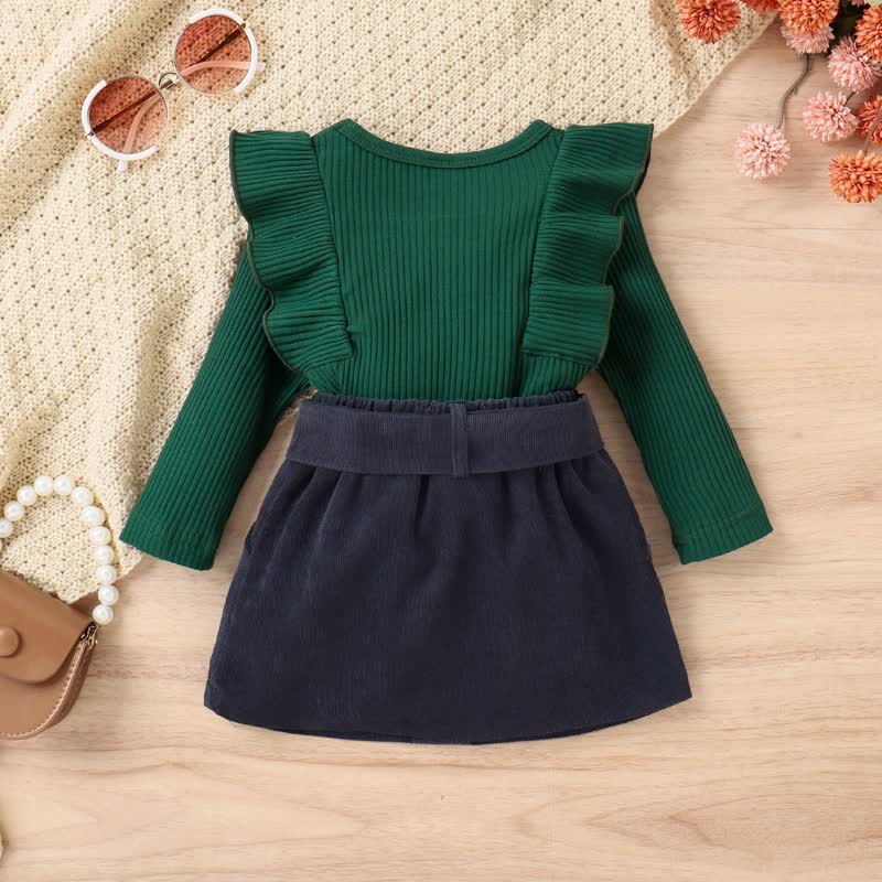 Baby 2-Piece Ruffled Corduroy Bow Set