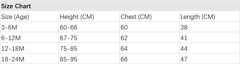 *Babies grow at their own pace. It's recommended to choose the size that corresponds to your mini's height and weight rather than their age for a much more accurate fit. Please also take delivery time into consideration.