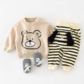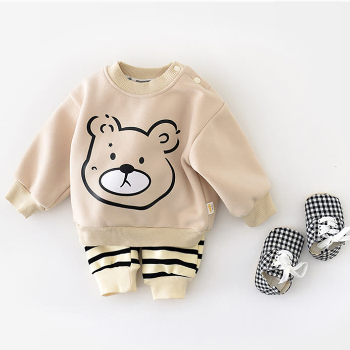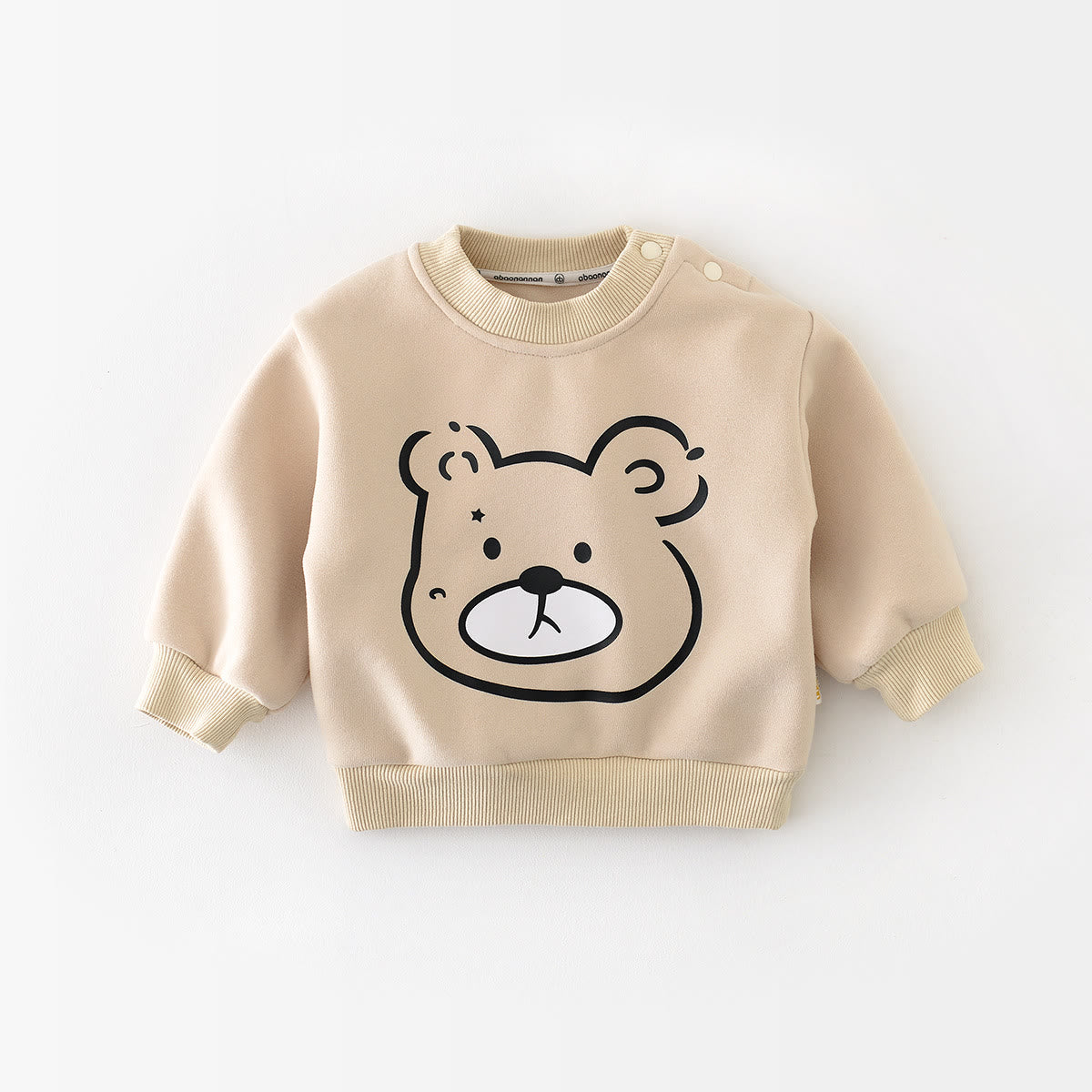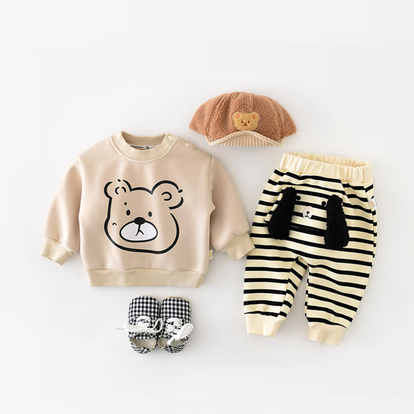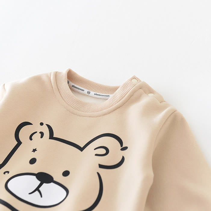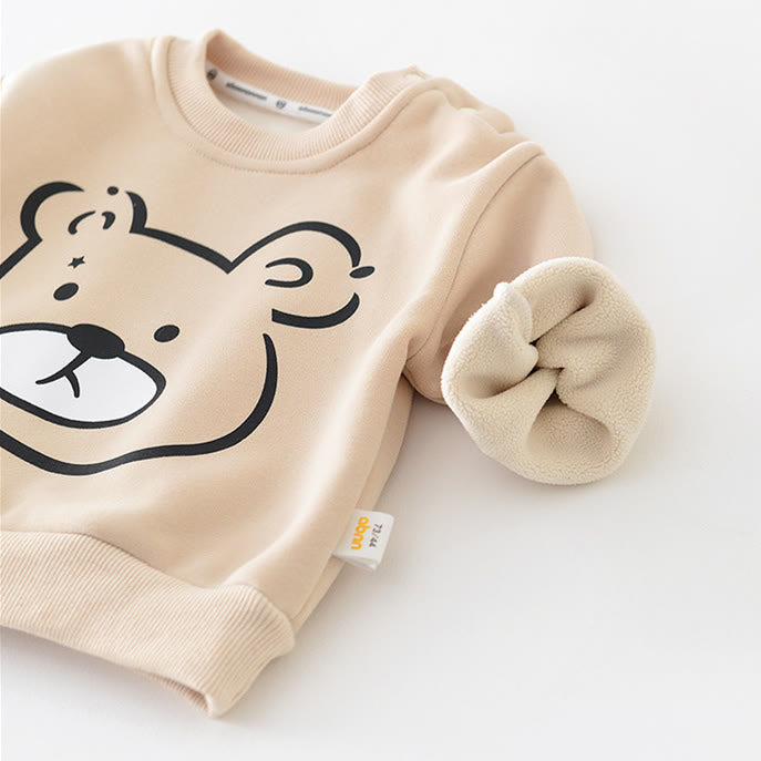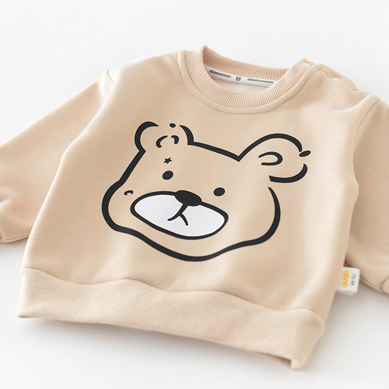 Baby Cartoon Bear Head Casual Fleece Lined Sweatshirt