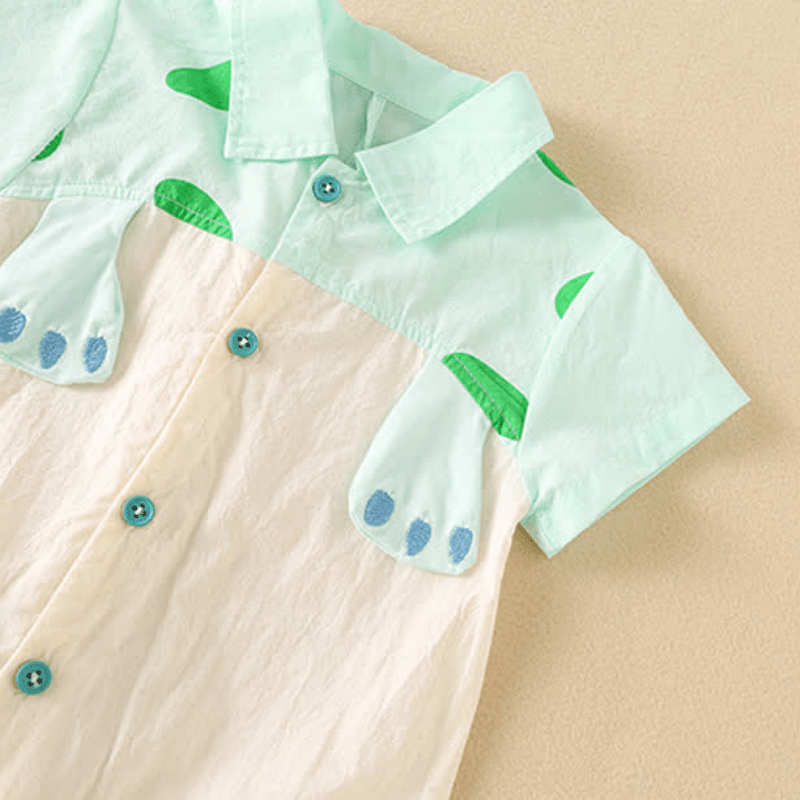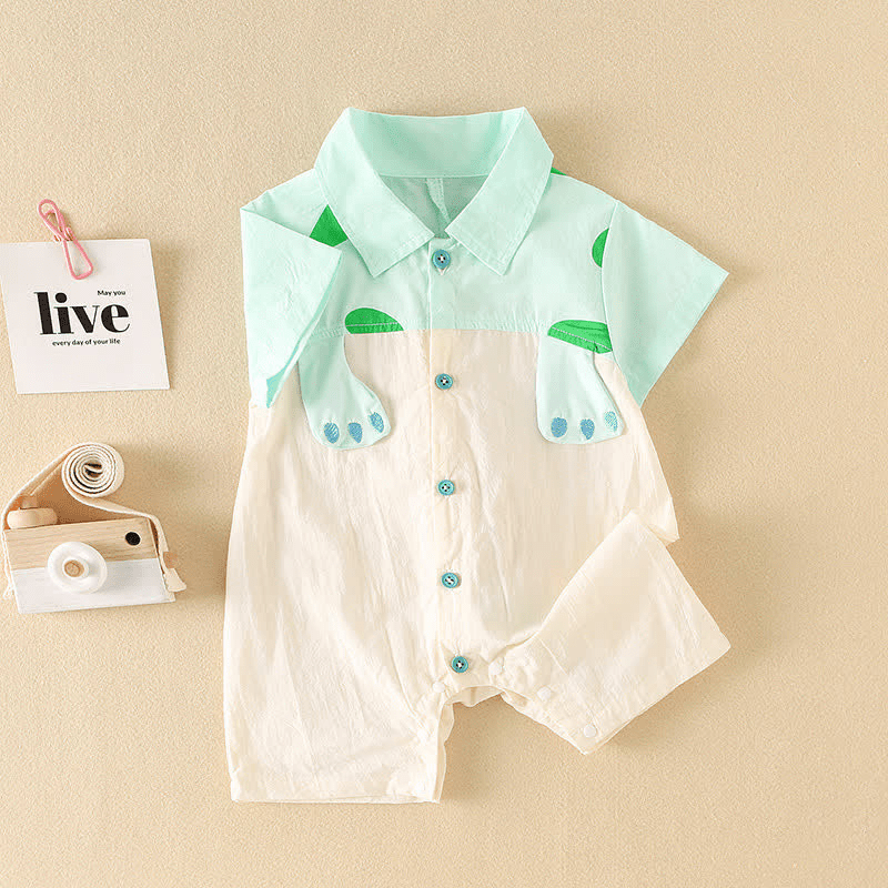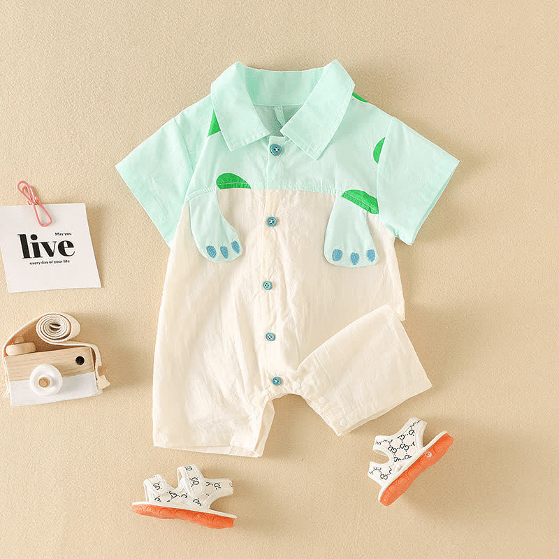 Baby Dino Color Block Polo Collar Romper