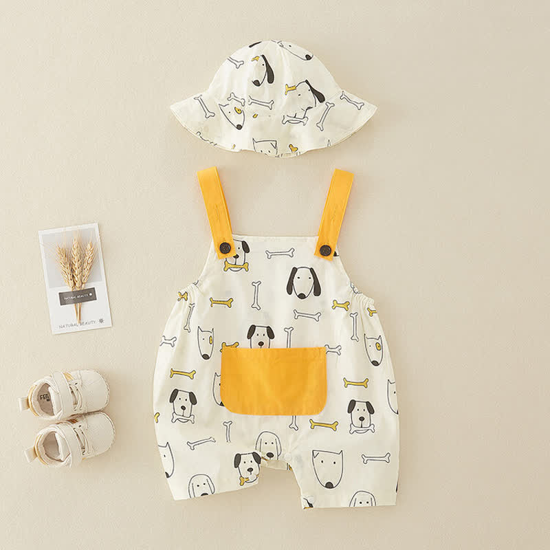Baby Dog Bone Overalls with Hat
