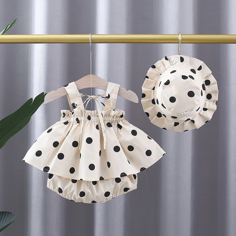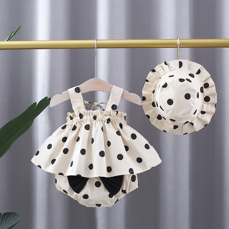 Baby Dot Camisole Bowknot Shorts with Hat