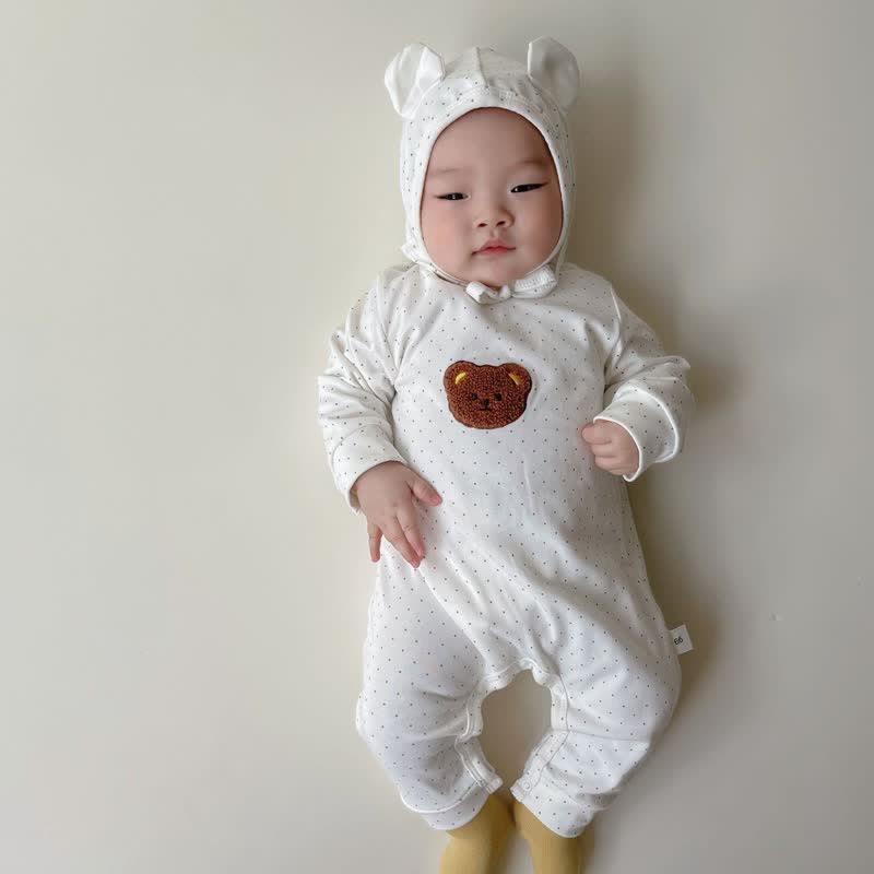 Baby Embroidered Bear Dot Bodysuit with Bonnet