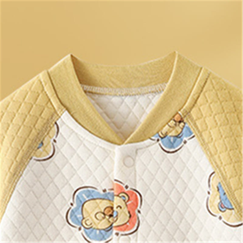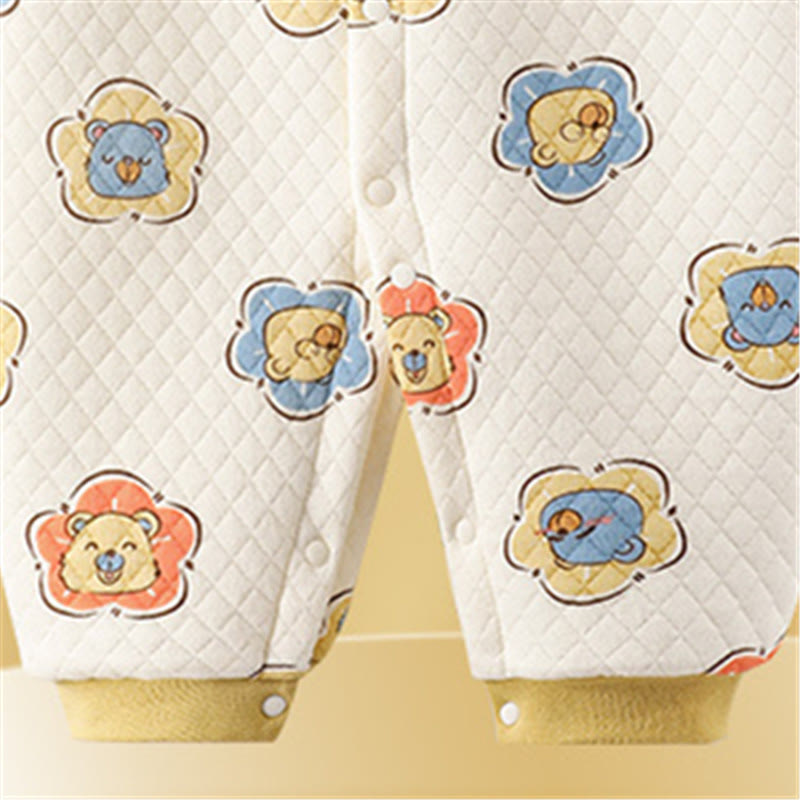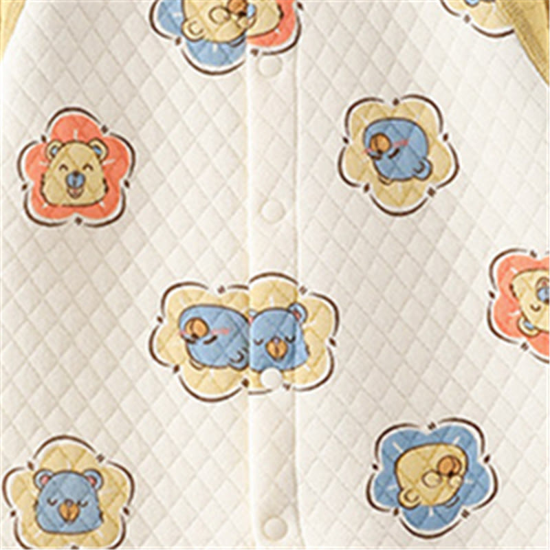 Baby Flower Bear Quilted Contrast Sleeves Romper