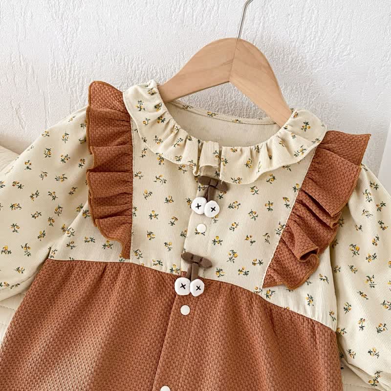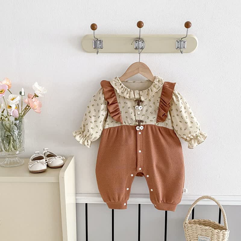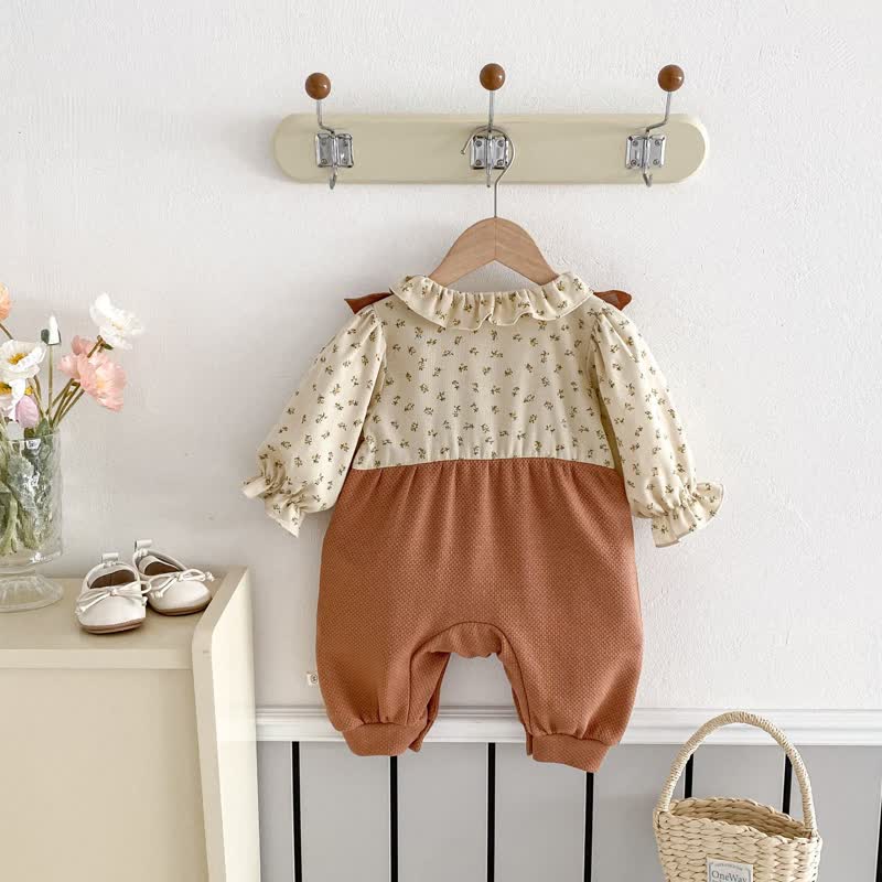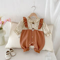 Baby Girl Flower Bow Brown Romper