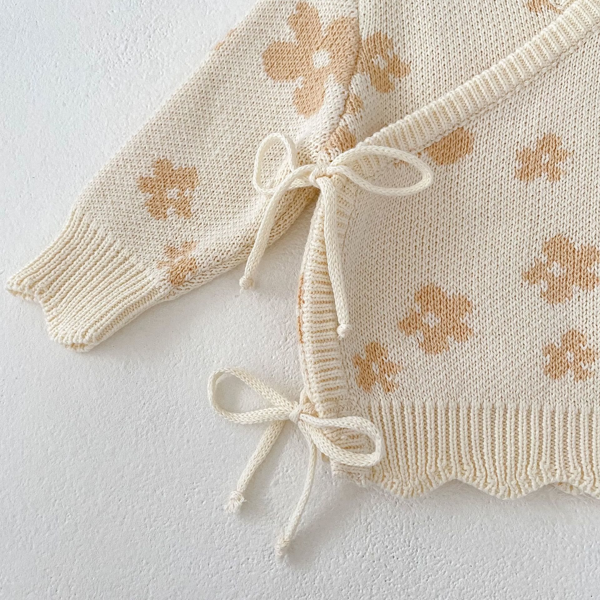 Baby Knitted Kimono Flower Sweater Pants Hat Socks