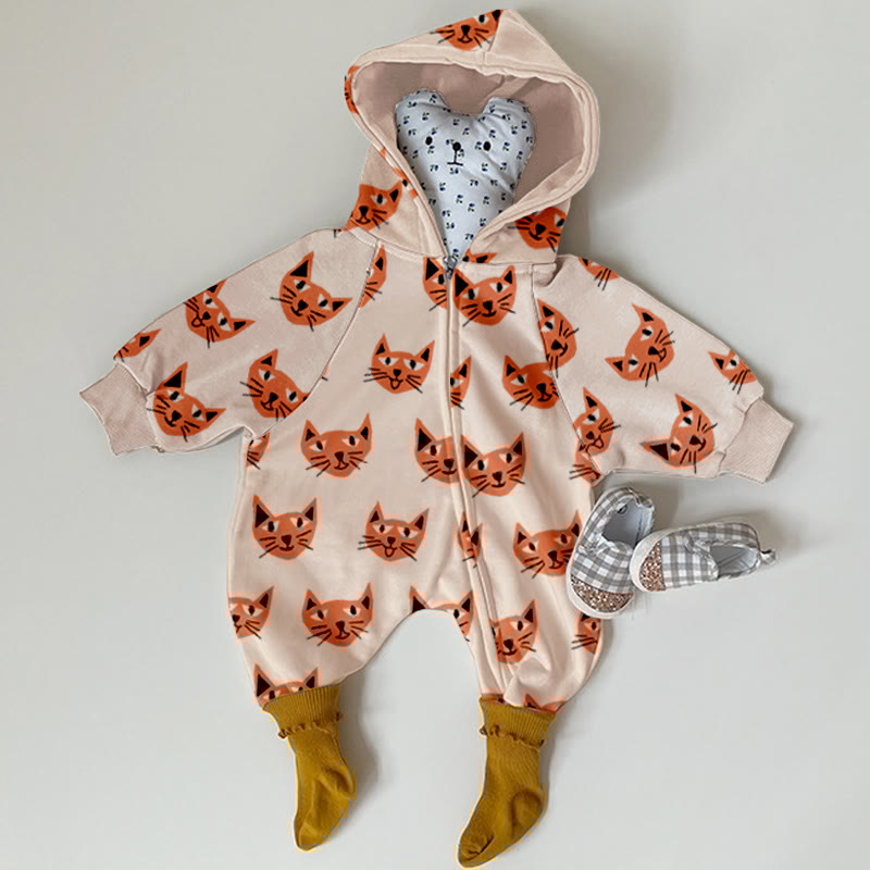 Baby Orange Cat Hooded Lovely Romper