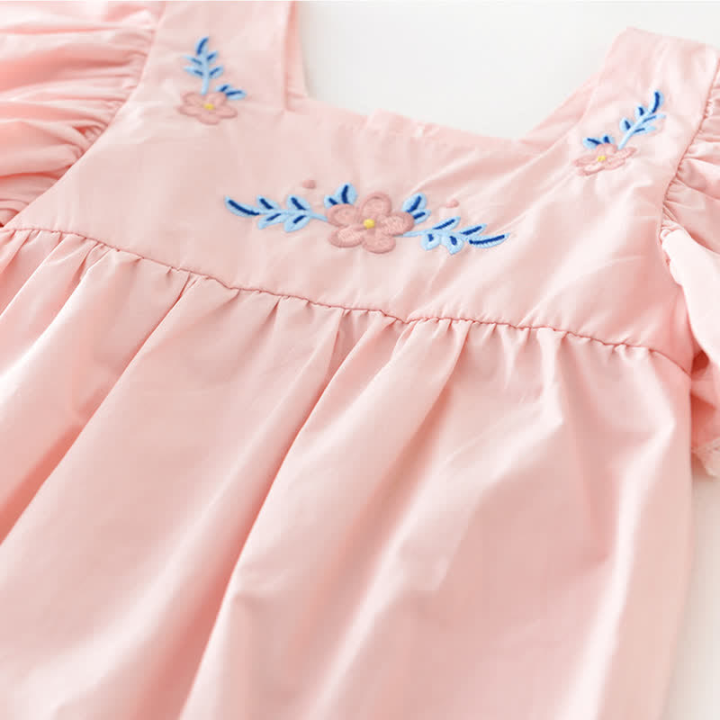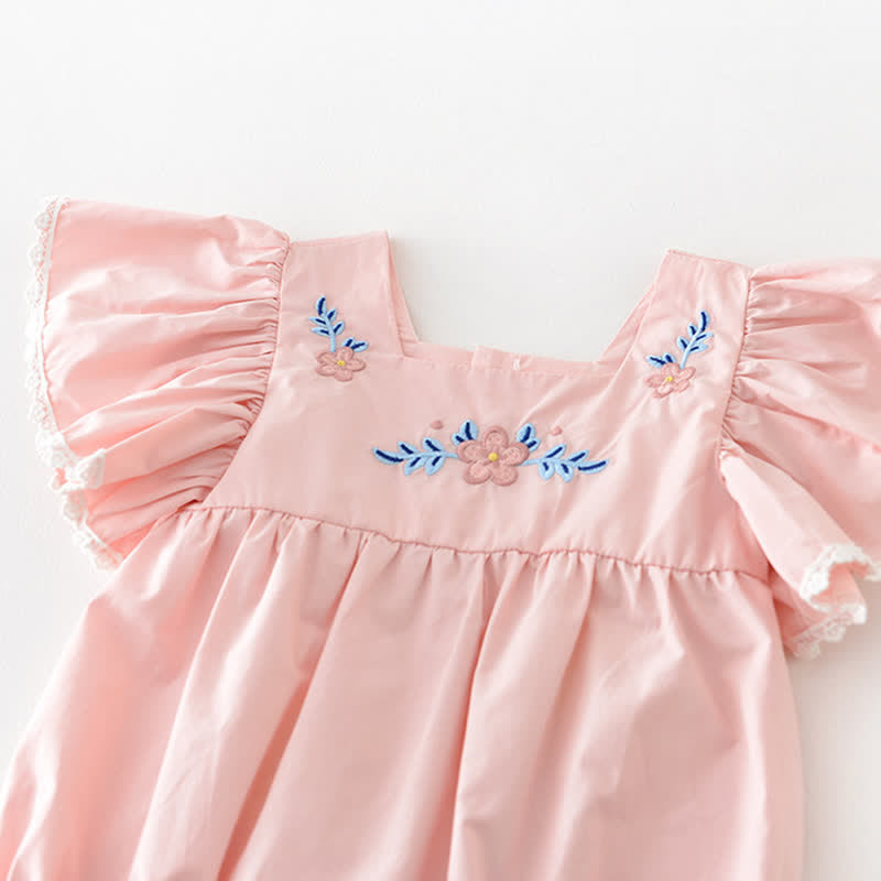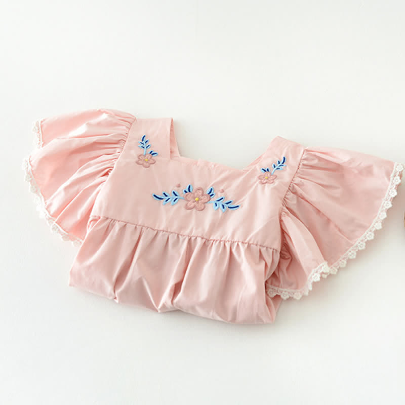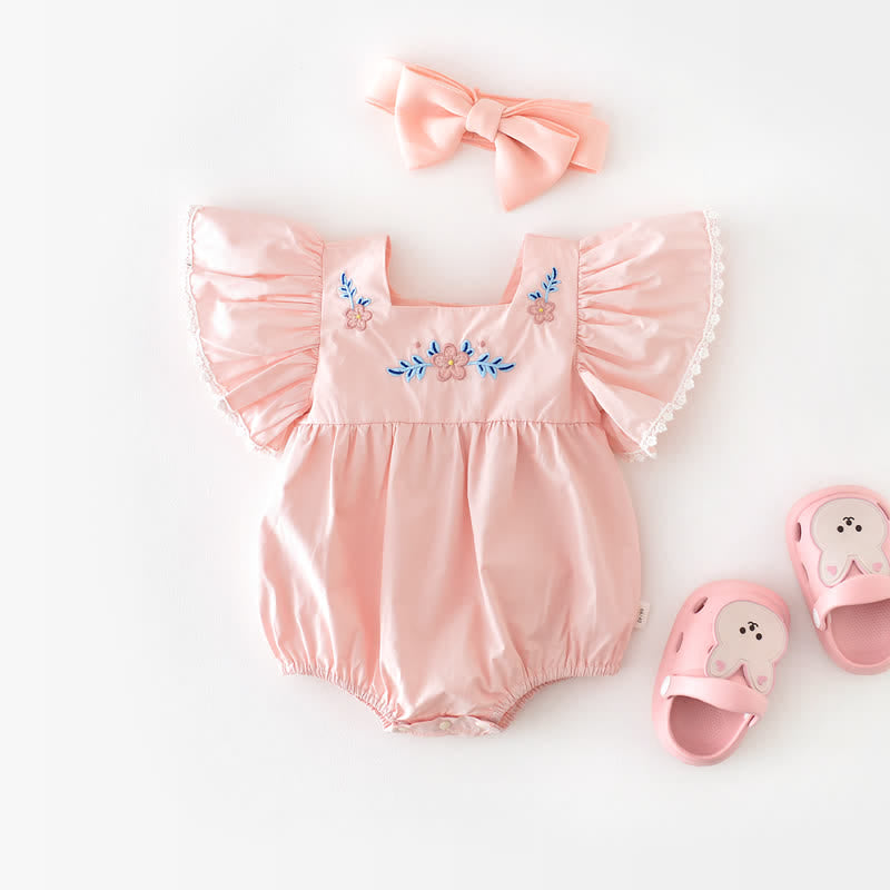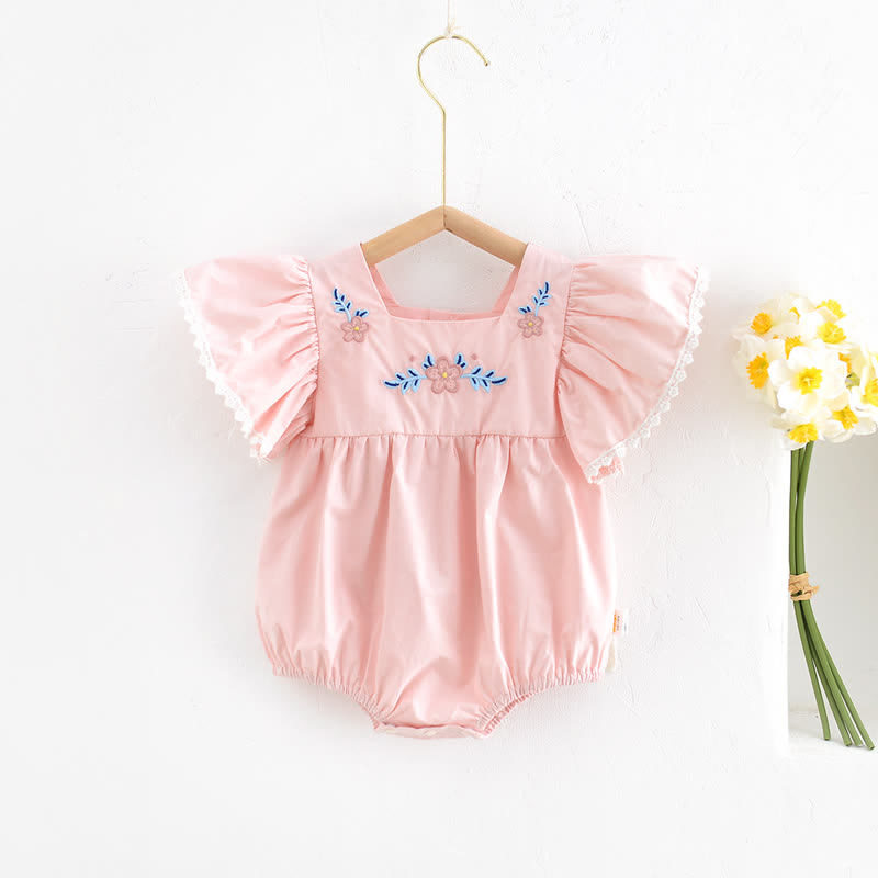Baby Ruffle Sleeves Embroidered Flower Bodysuit