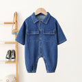 Baby Solid Color Blue Denim Romper