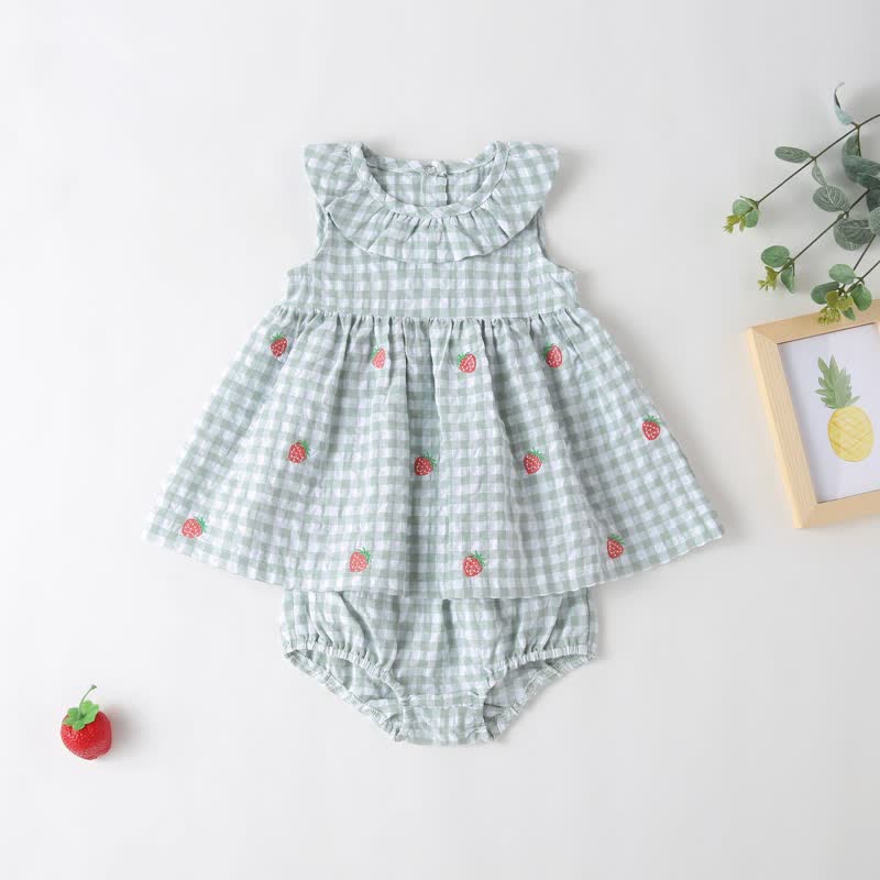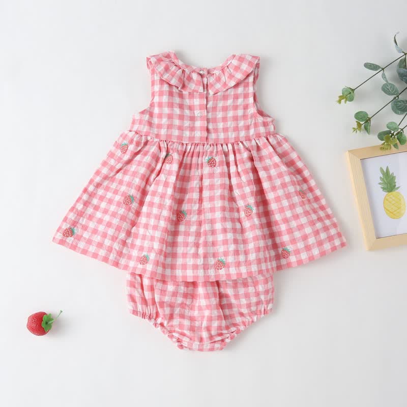 Baby Strawberry Plaid Blouse and Bloomers Set