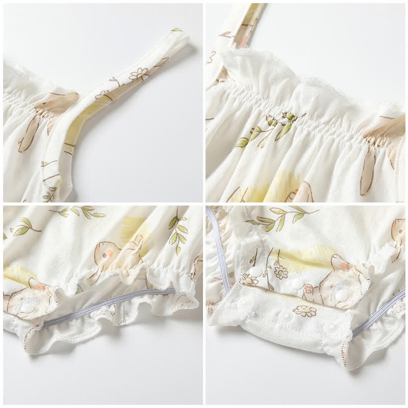 Baby Strawberry Rabbit Leaf Pajamas Bodysuit
