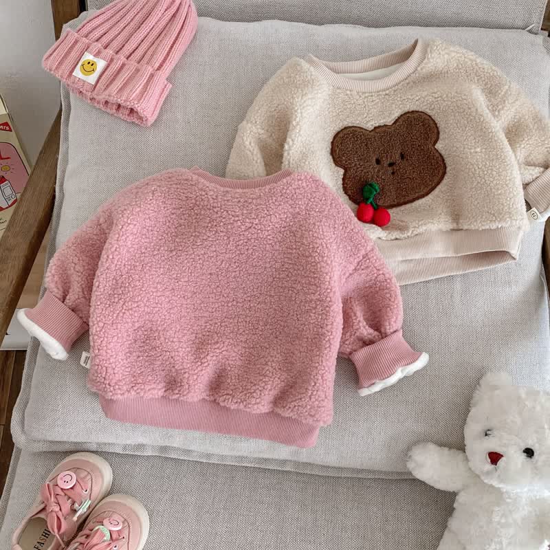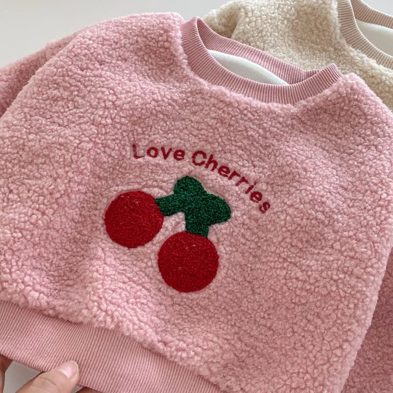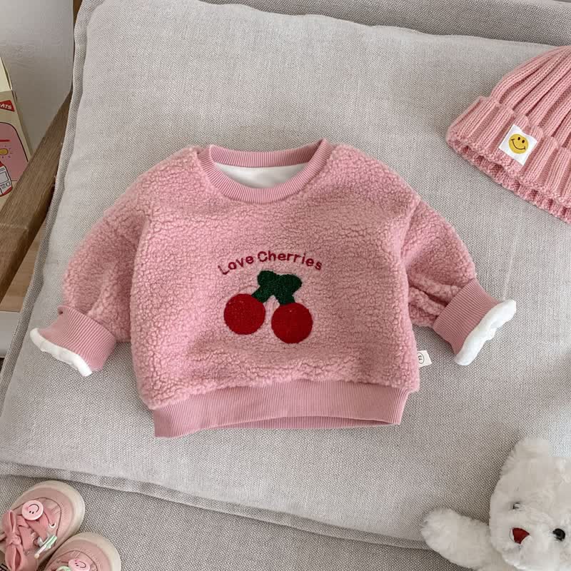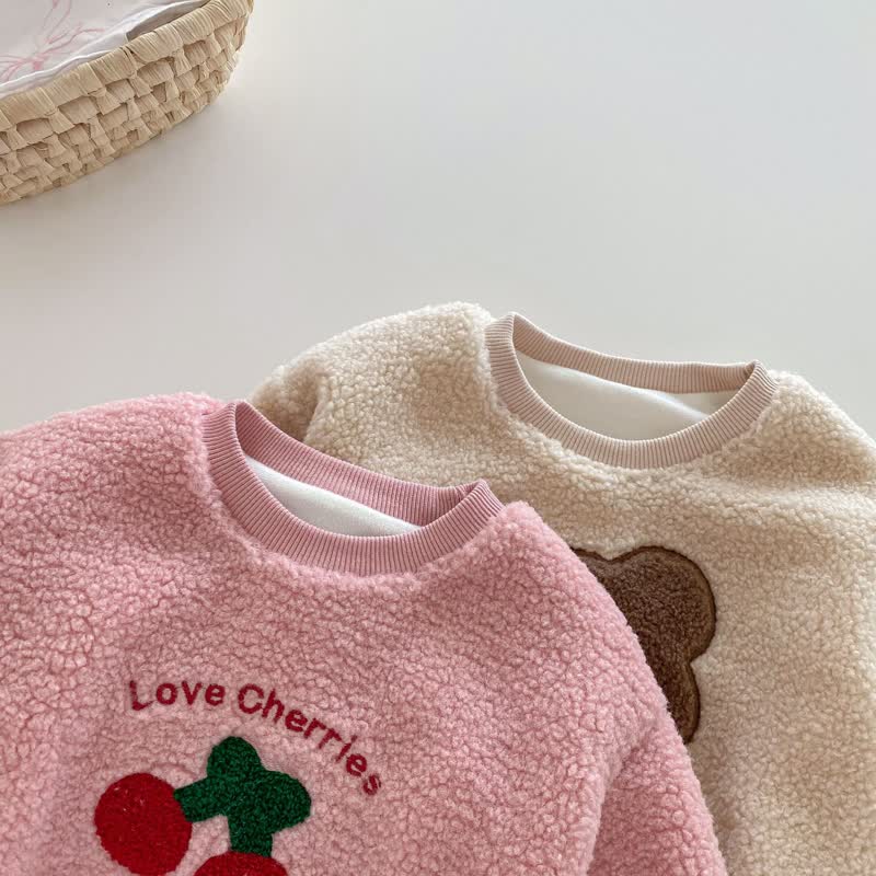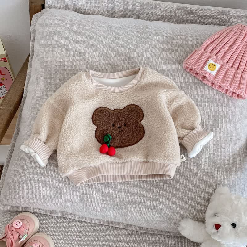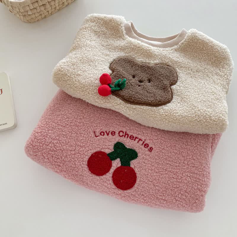 Baby Toddler Bear Cherries Plush Sweatshirt