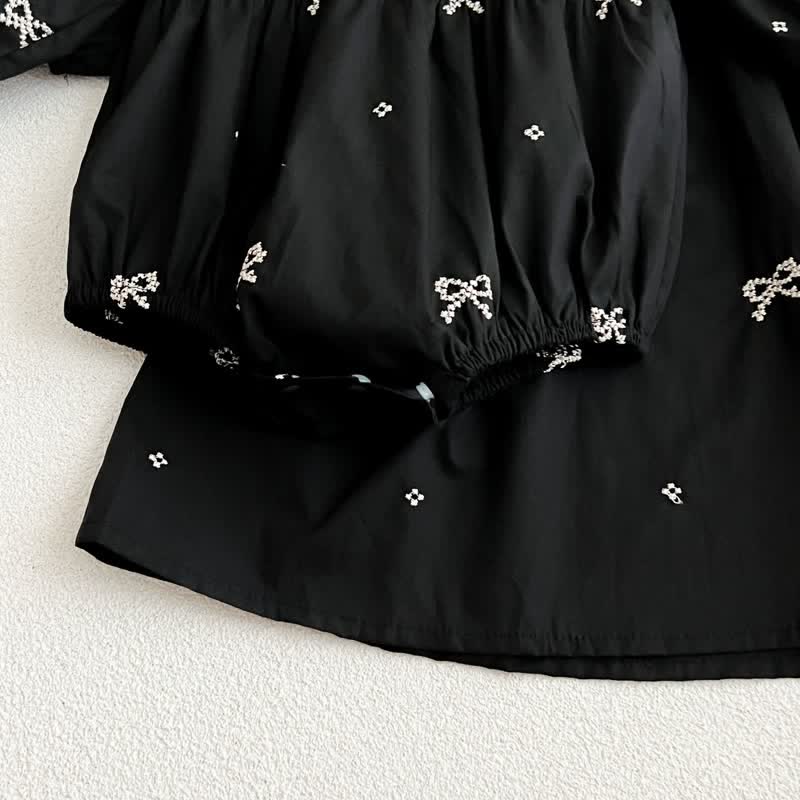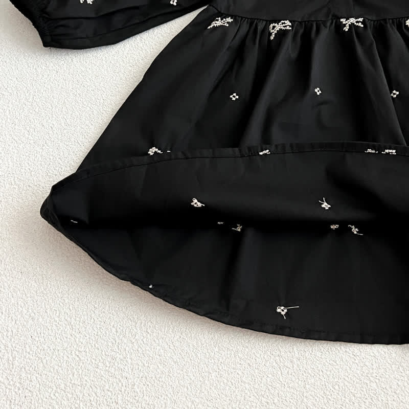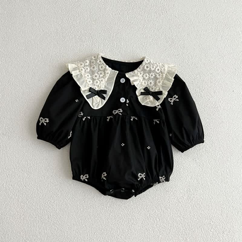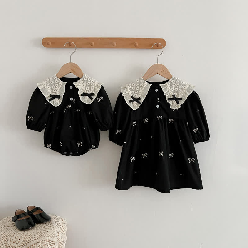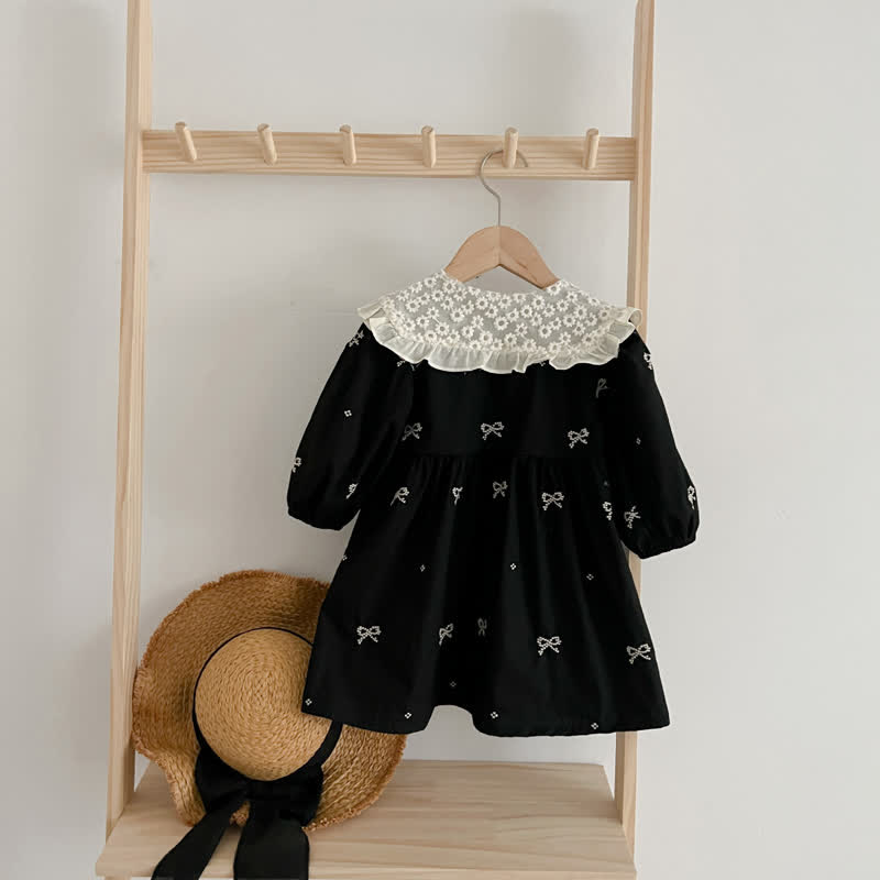Baby Toddler Black Bows Embroidered Bodysuit Dress