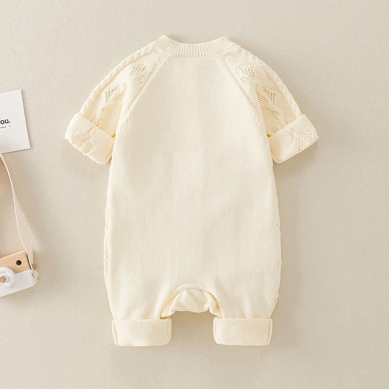 Baby Twist Solid Color Knitted Apricot Romper