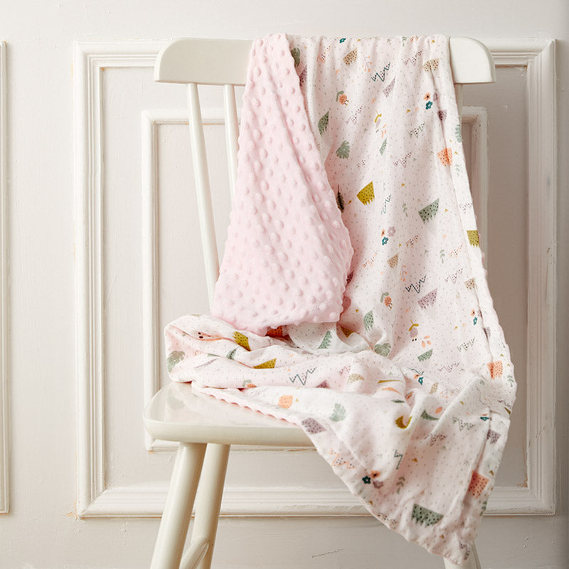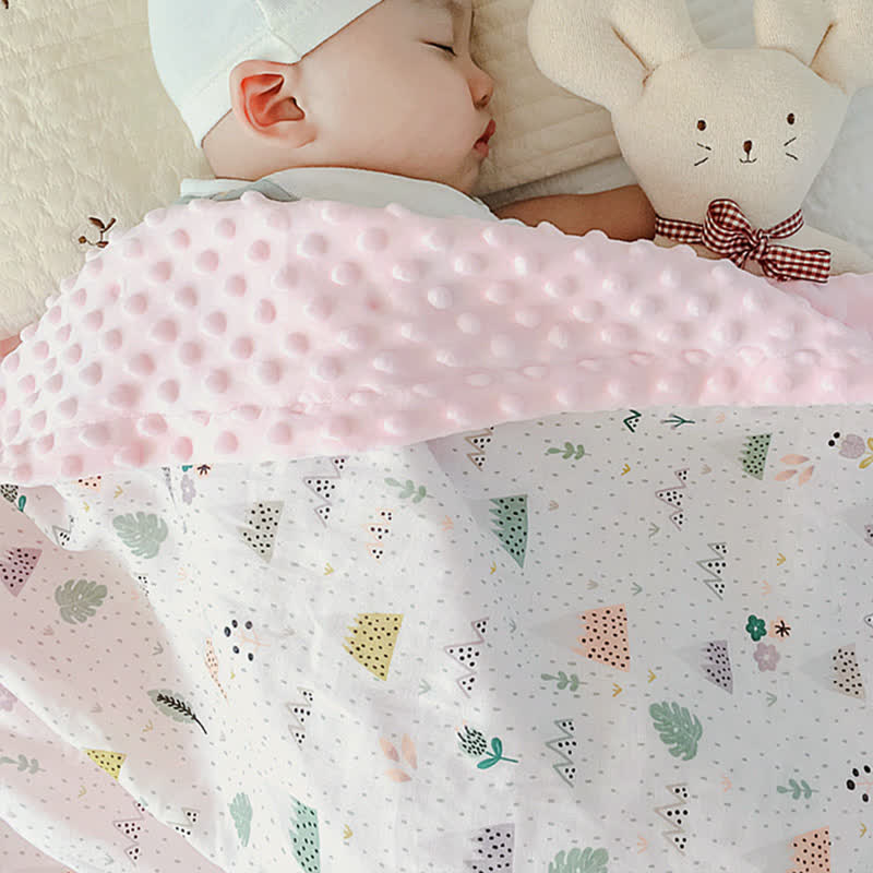Babies will definitely love snuggling up safely in this blanket which is made from super-soft dimple dot fabric, that little hands find very comforting, on one side; and airy bamboo fiber on the other side.