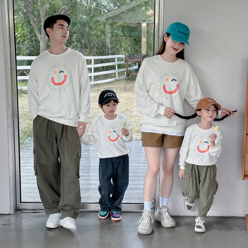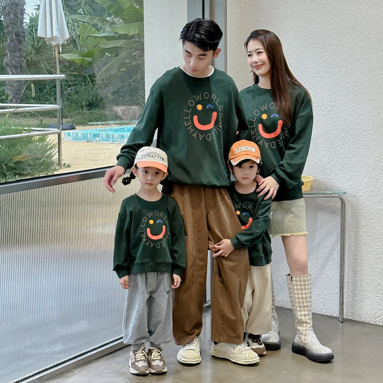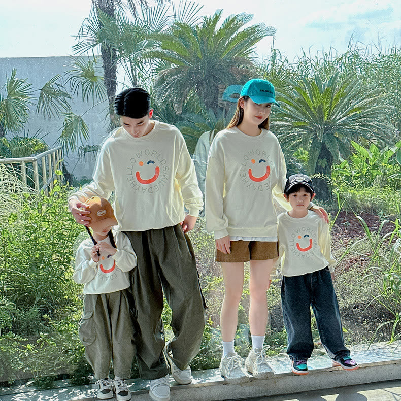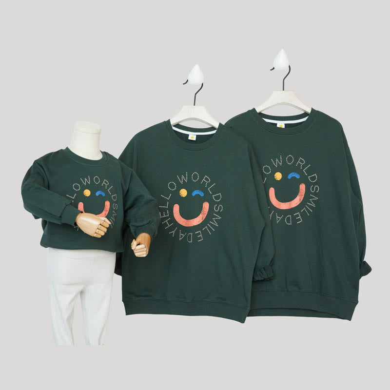 HELLO WORLD SMILE DAY Family Matching Slogan Sweatshirt