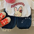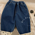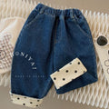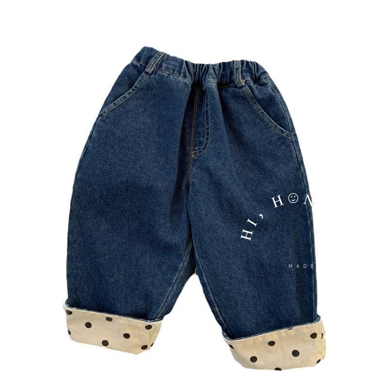 Kid Boy Polka Dots Contrast-panel Hem Elasticated Jeans Pants