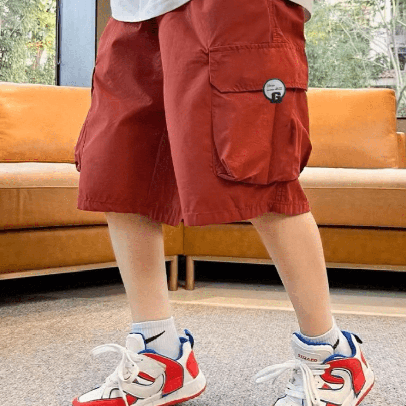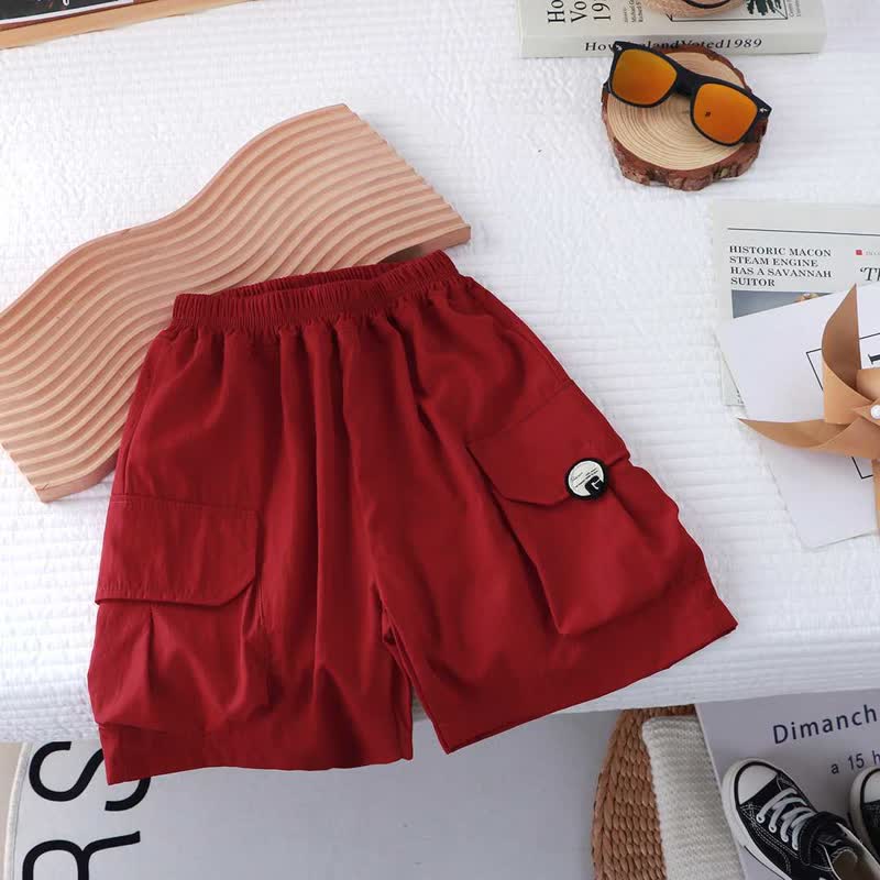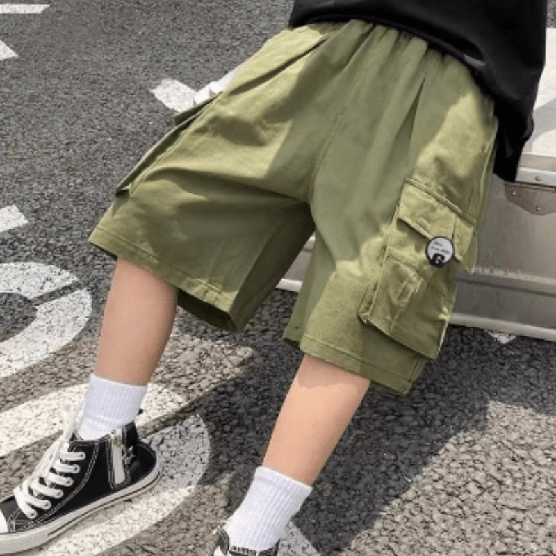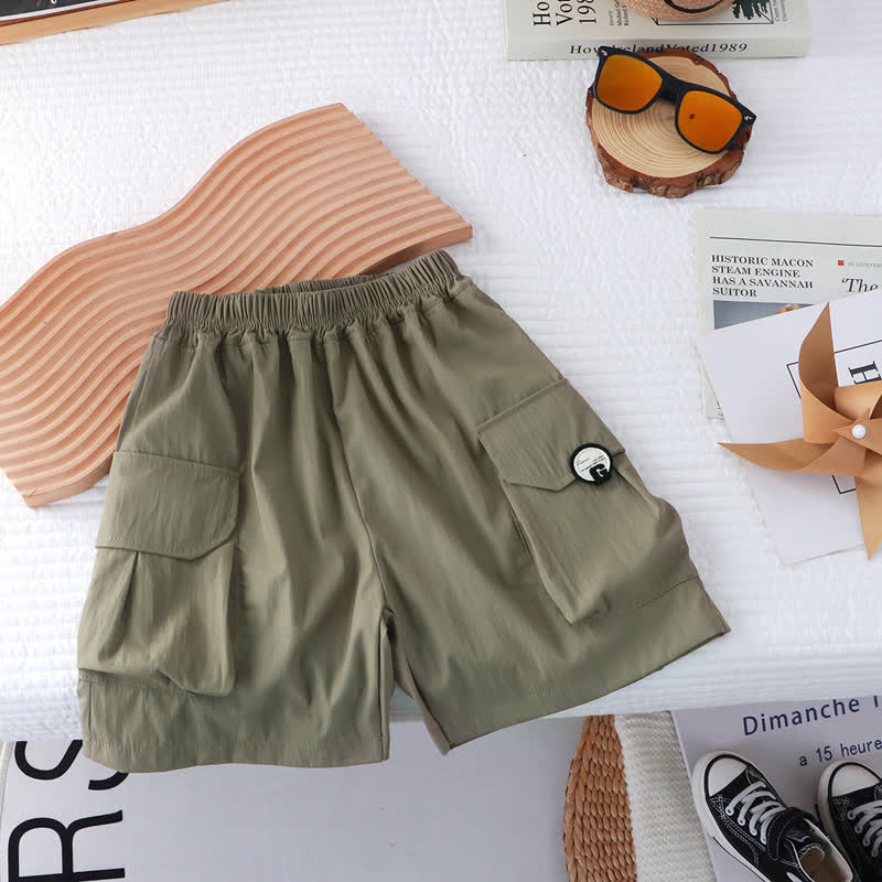 Kid Boy Solid Color Large Pockets Cargo Shorts