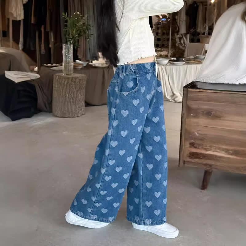 Kid Girl Loose Casual Wide-leg Jeans Pants