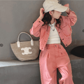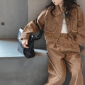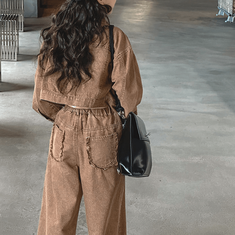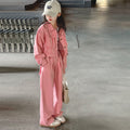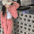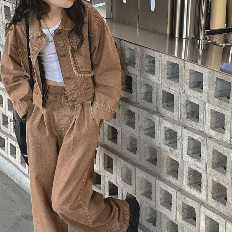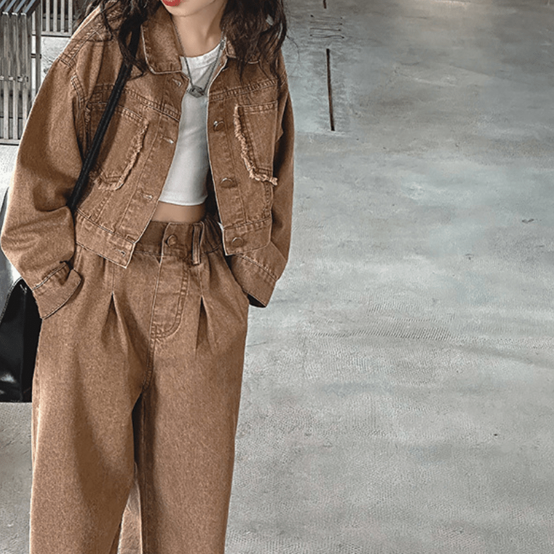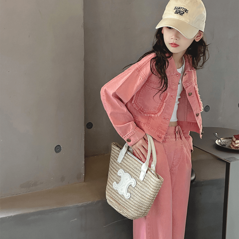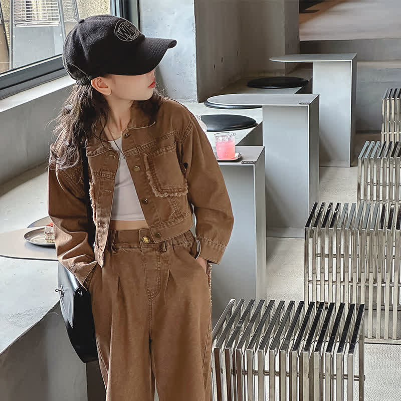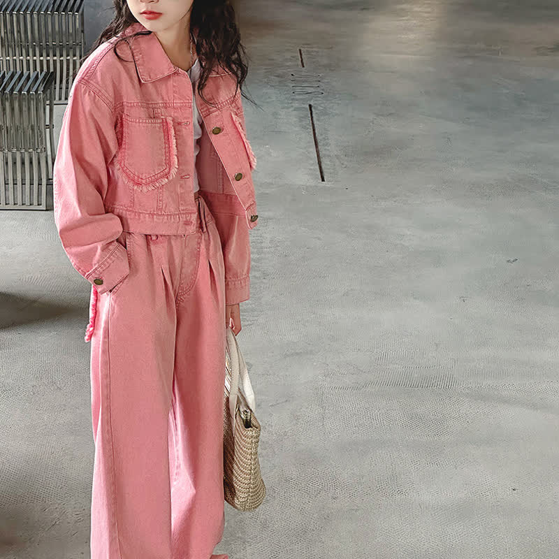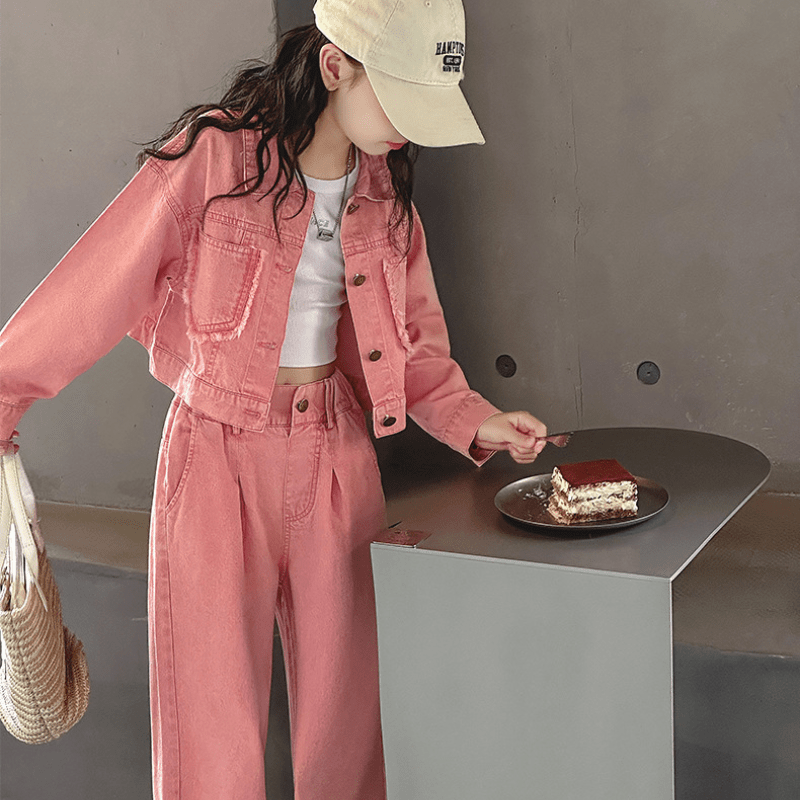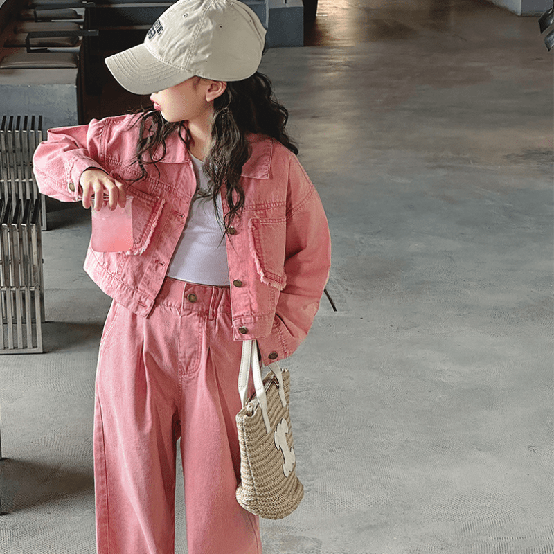 Kid Girl Solid Color Denim Jacket 2-piece Set