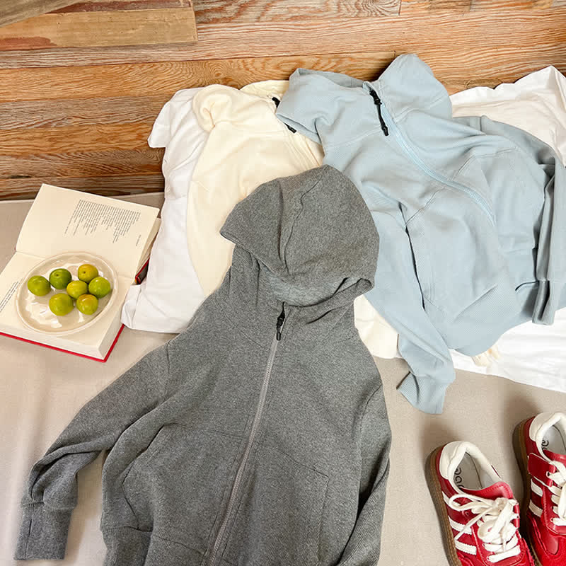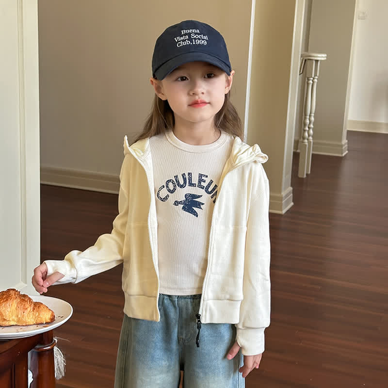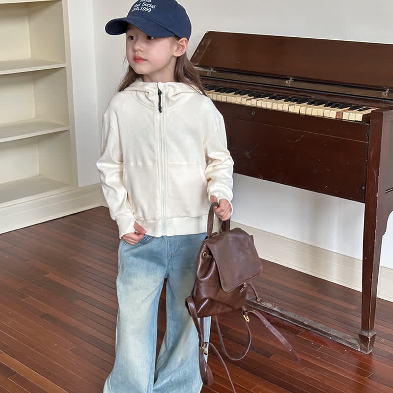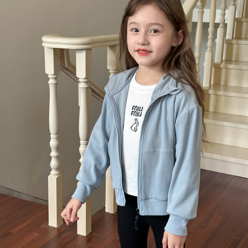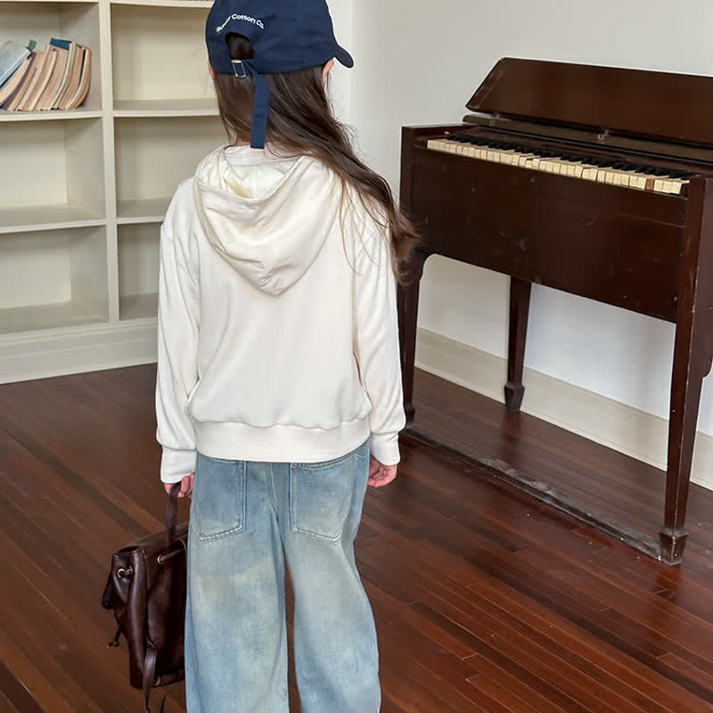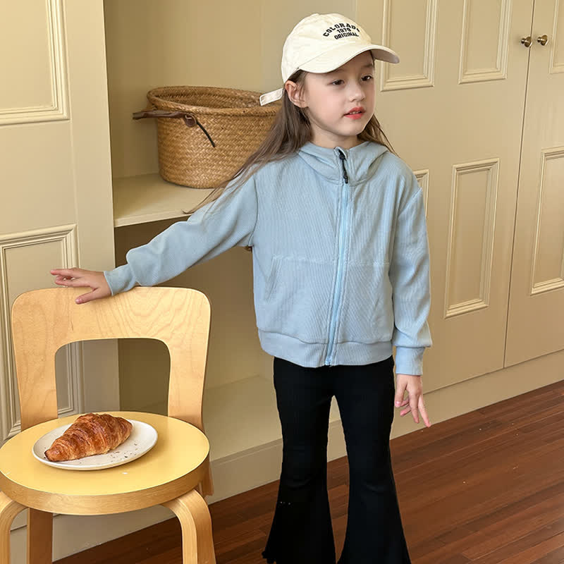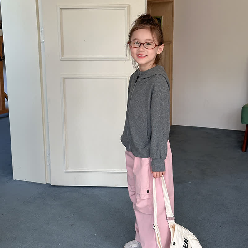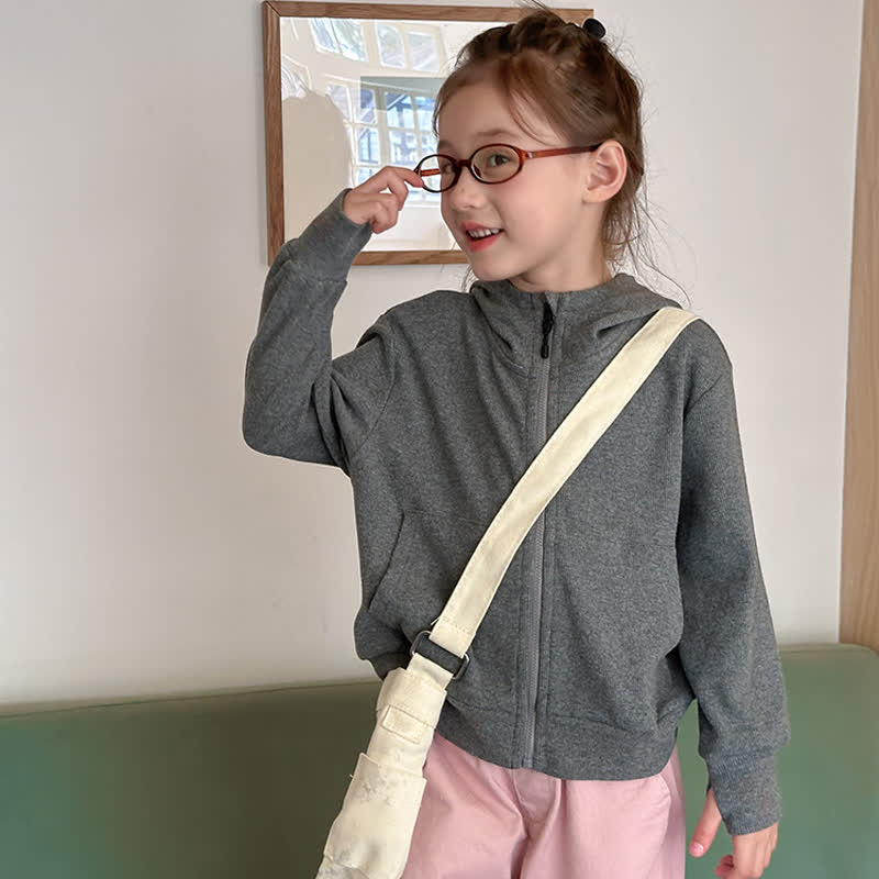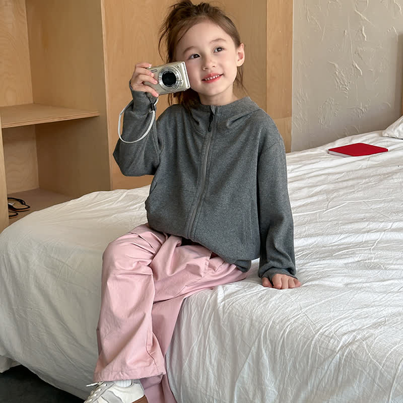 Kid Girl Solid Color Sweatshirt Hooded Jacket