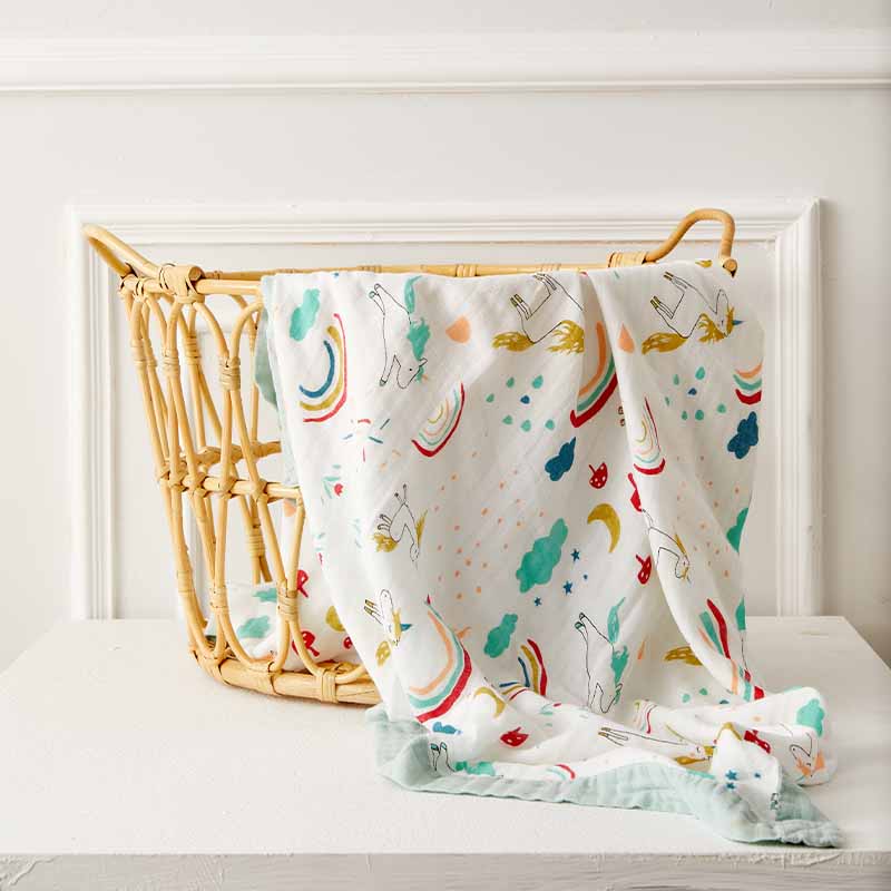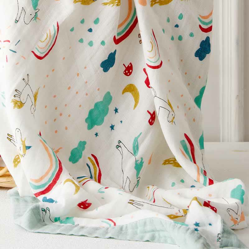 Rainbow Horse Four Layer Baby Bamboo Blanket