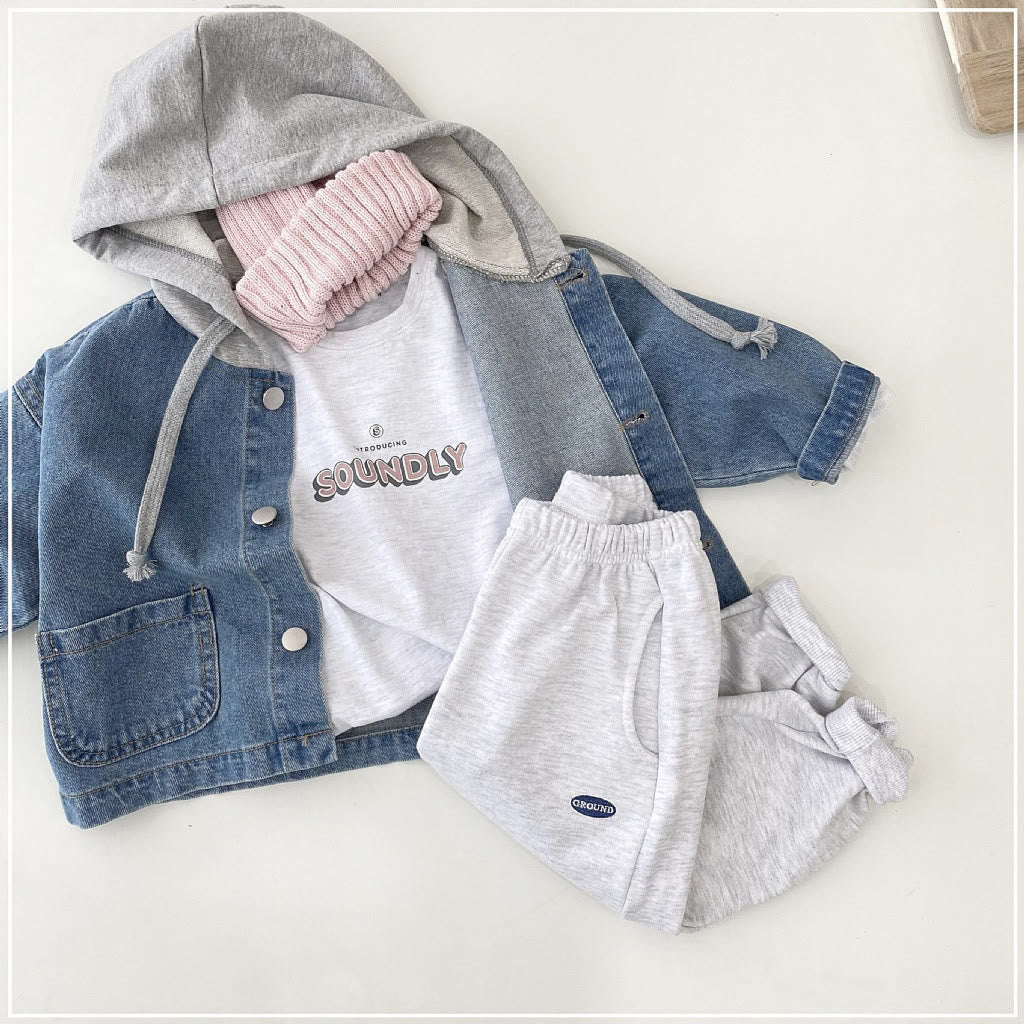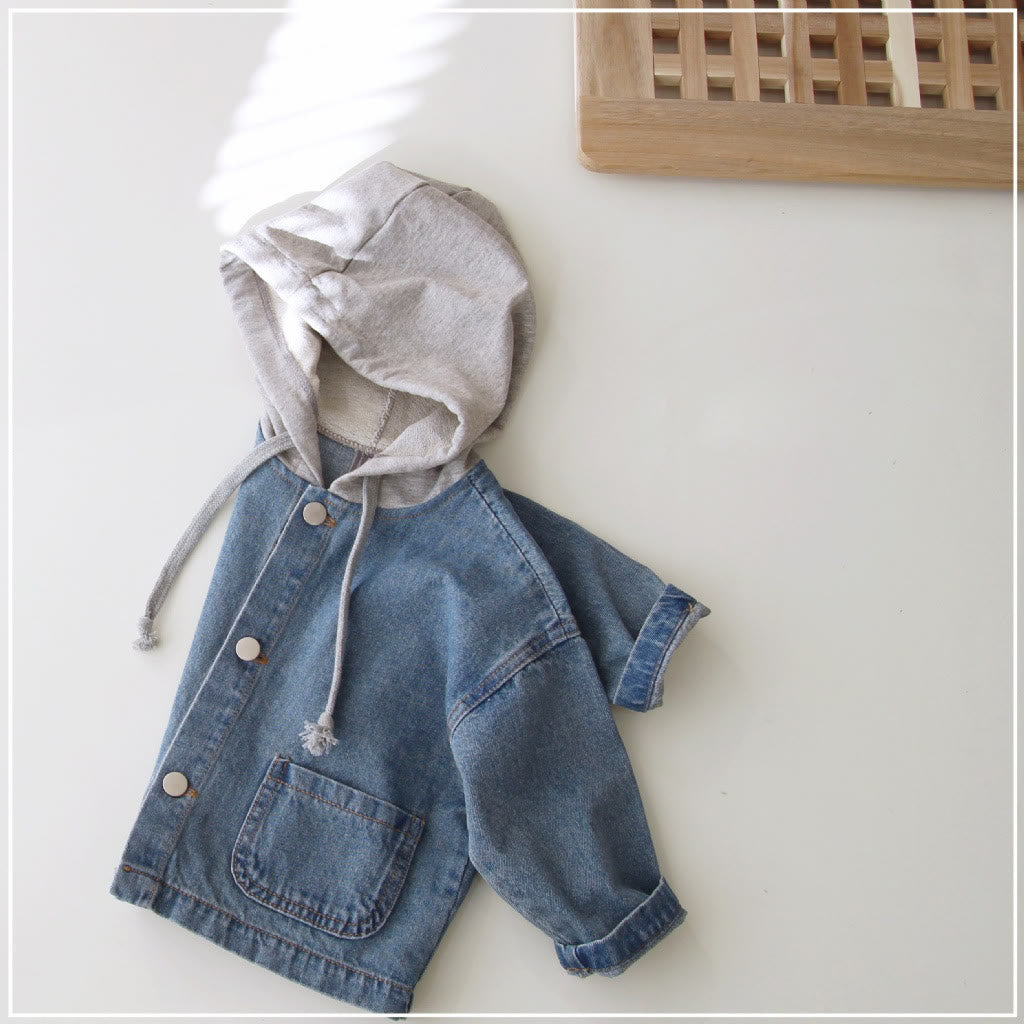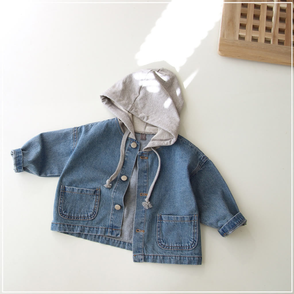 Toddler Blue Denim Fake 2 Pieces Hooded Coat