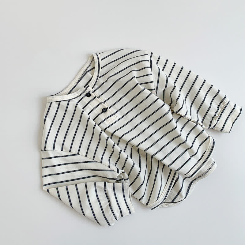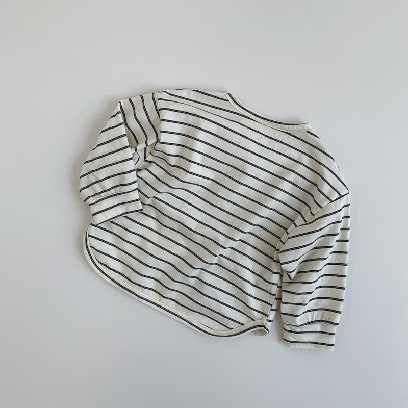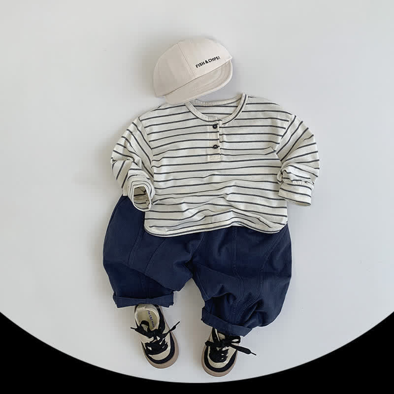 Toddler Double Button Striped Basic T-shirt
