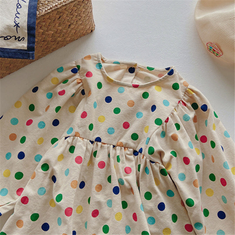 Toddler Girl Colorful Dots Puff Sleeves Dress