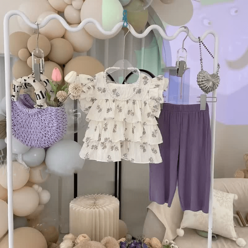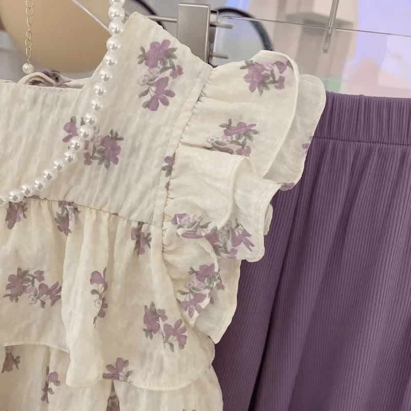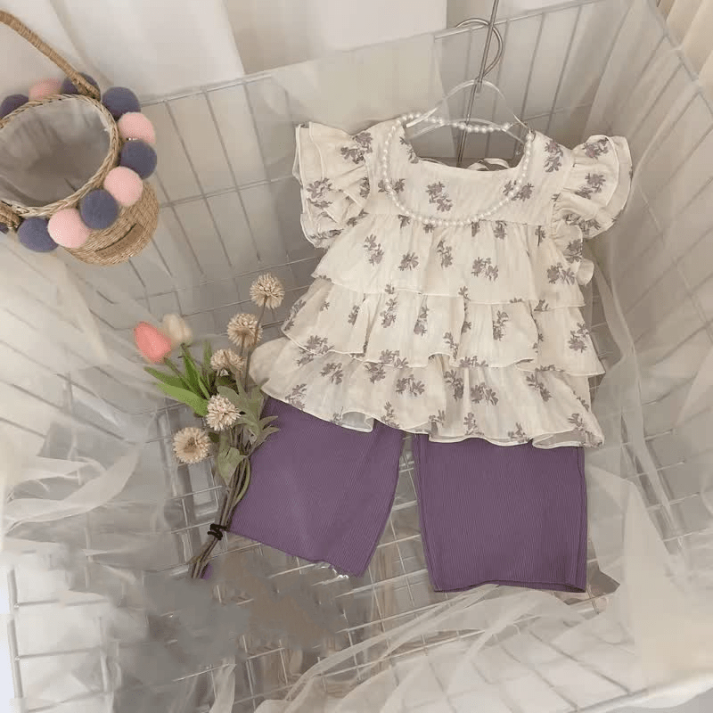 Toddler Girl Floral Ruffled Blouse and Pants Set