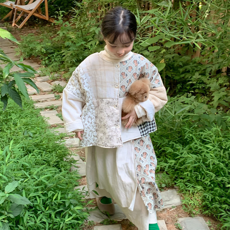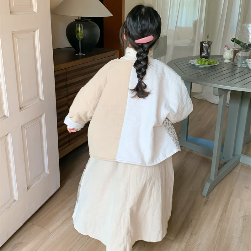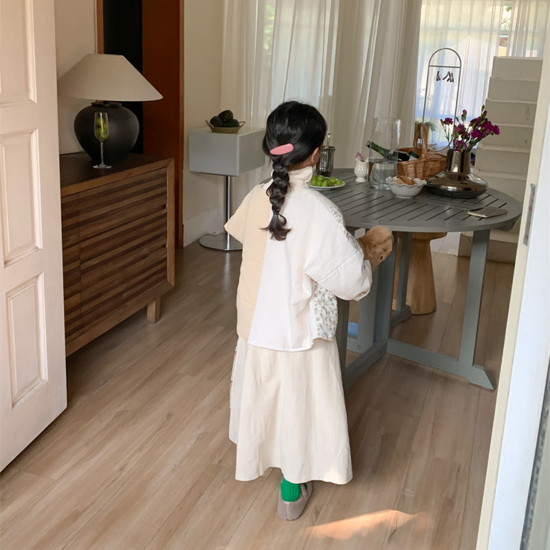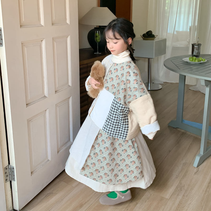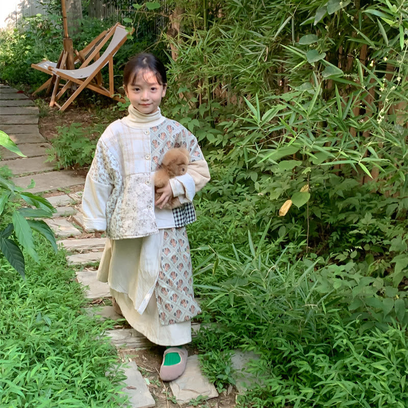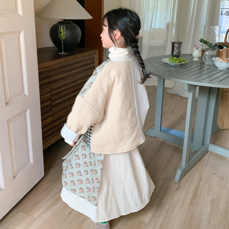 Toddler Girl Retro Style Plaid Flower Blouse Skirt