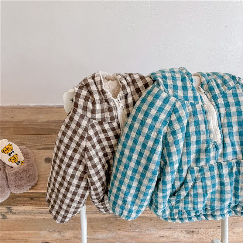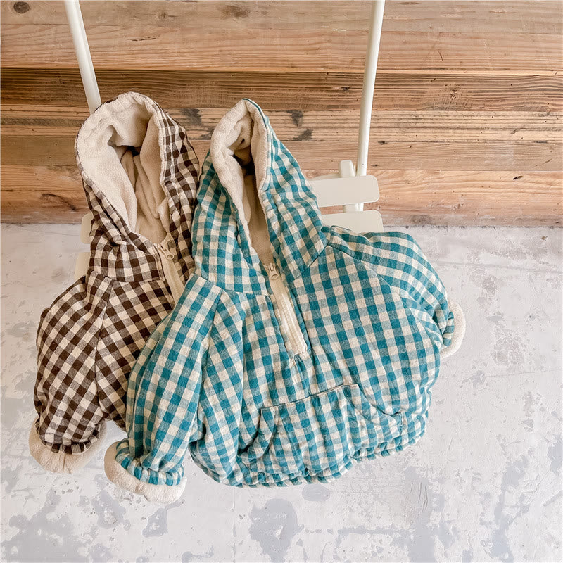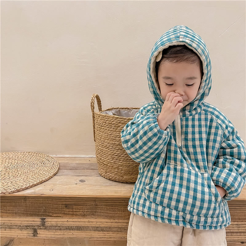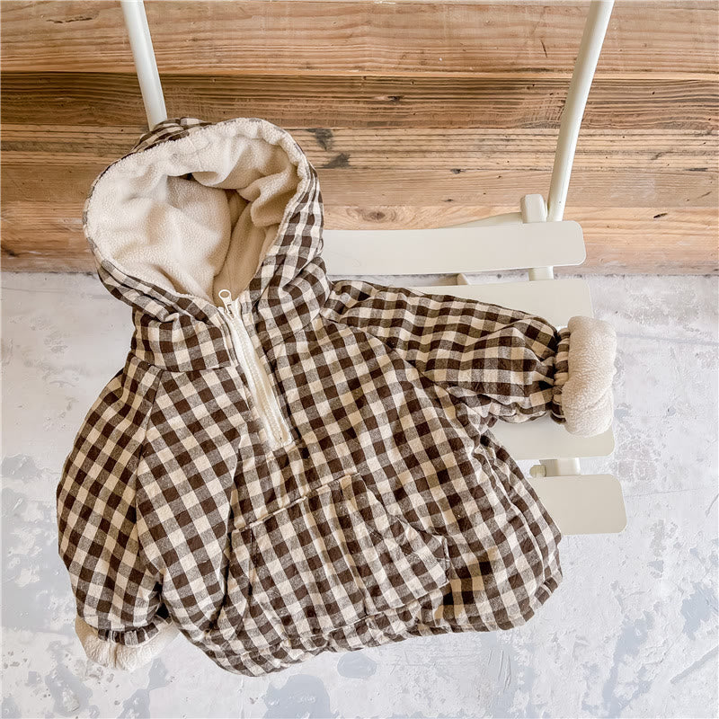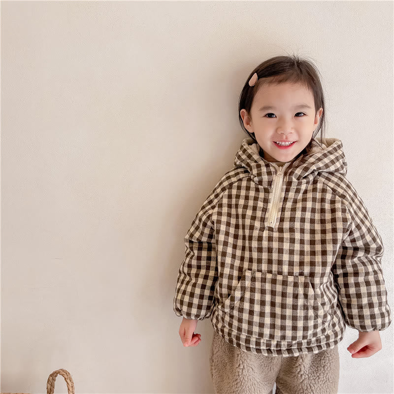 Toddler Quilted Fleece Lined Plaid Hooded Coat