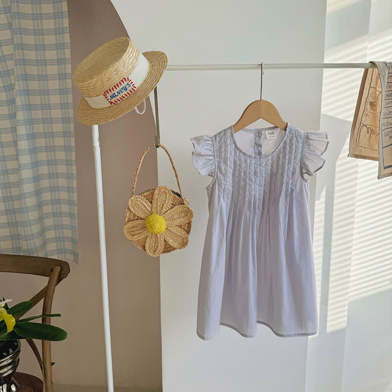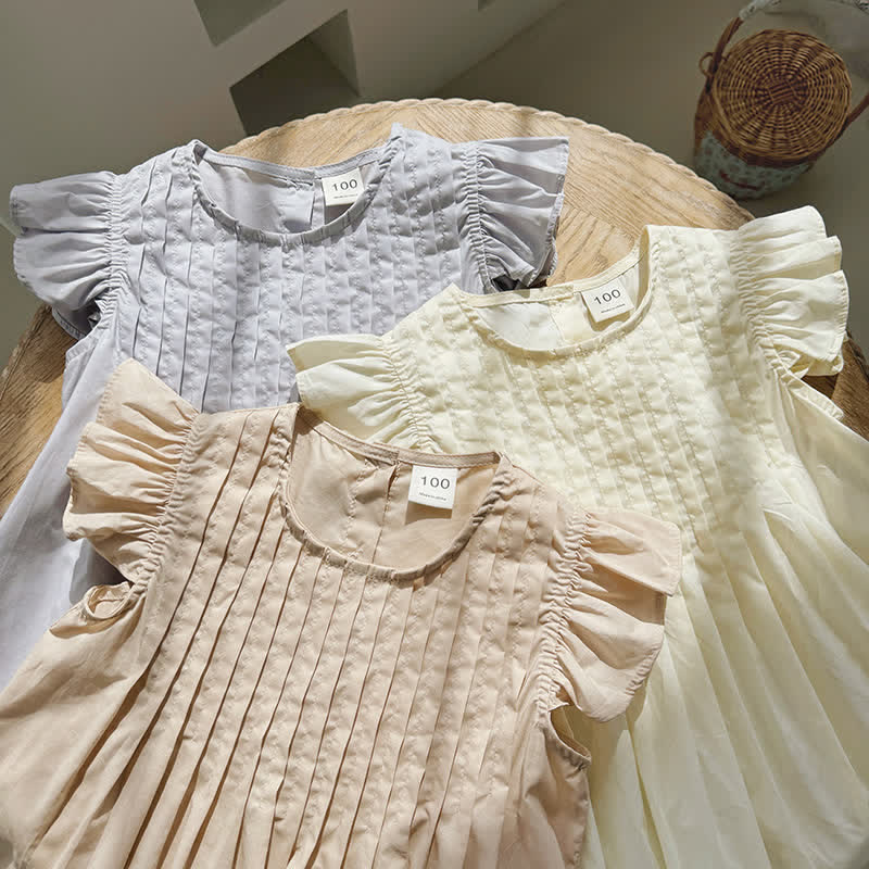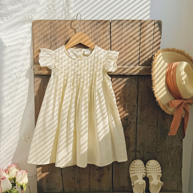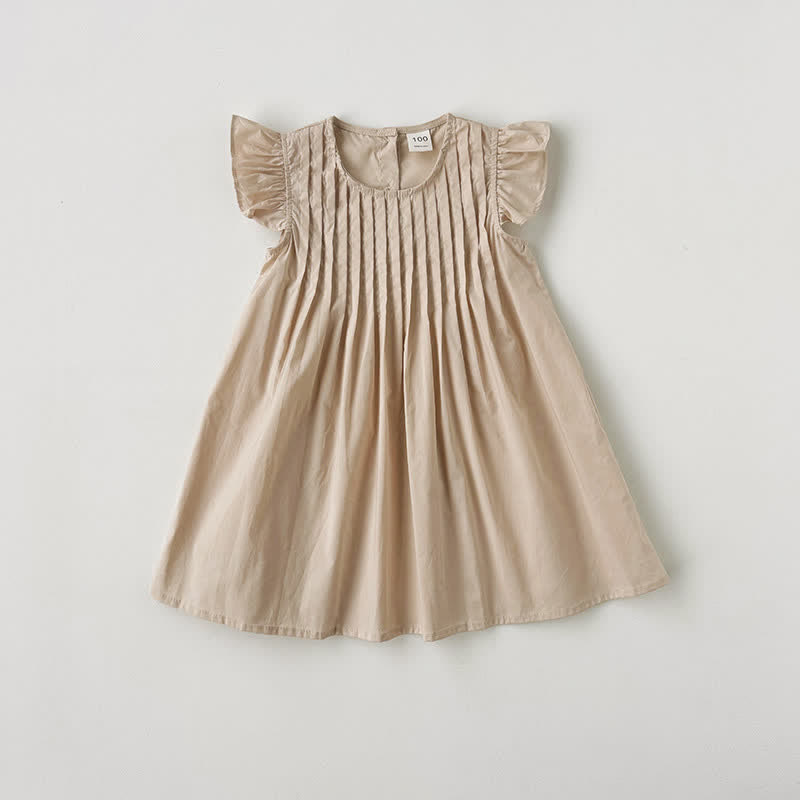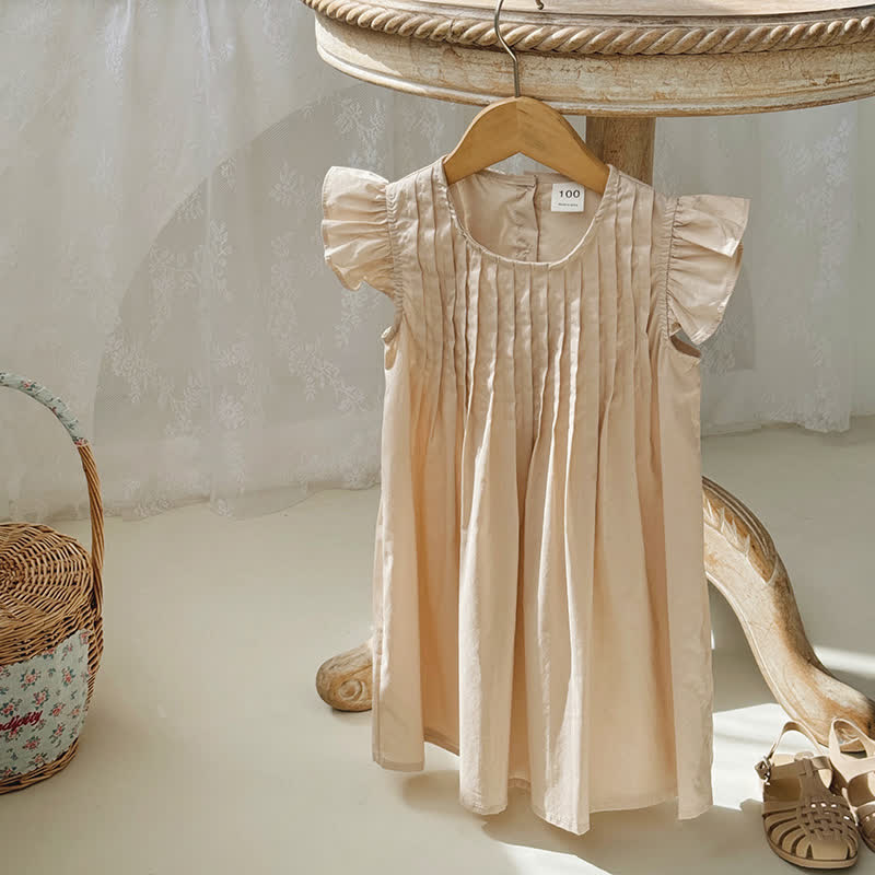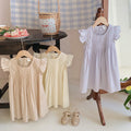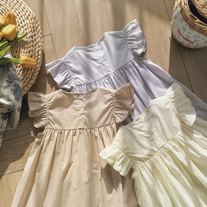 Toddler Simple Solid Color Ruffle Sleeves Dress