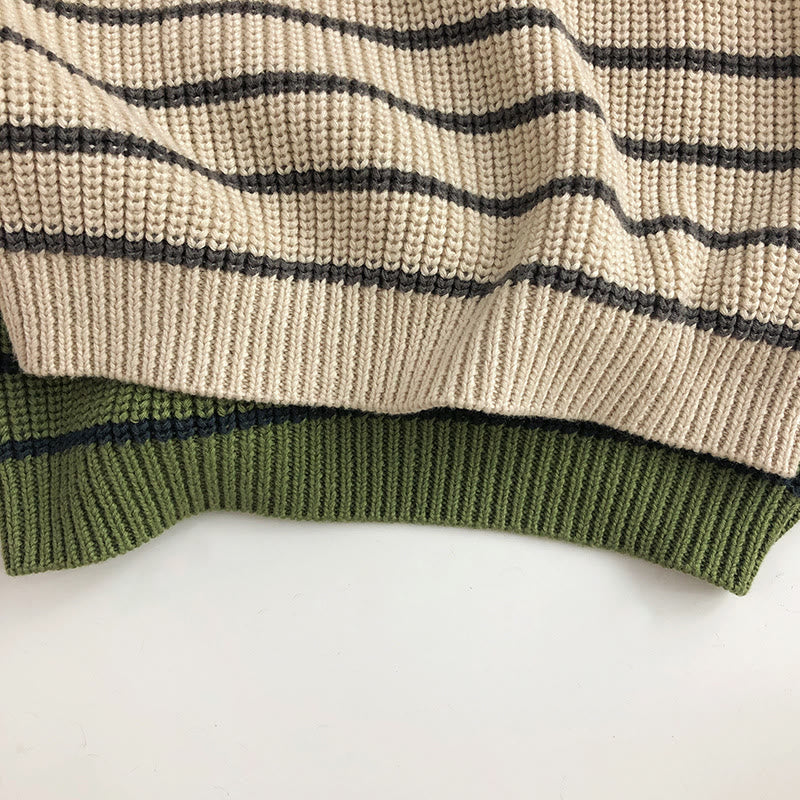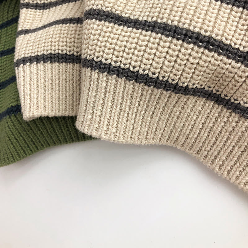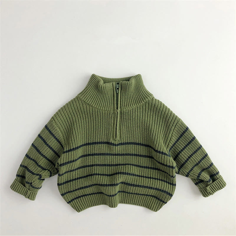 Toddler Zipper High Collar Striped Retro Style Sweater