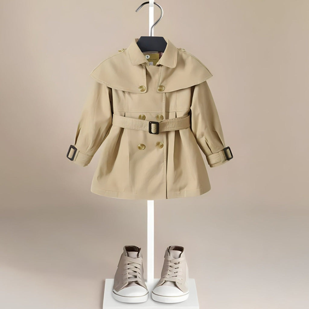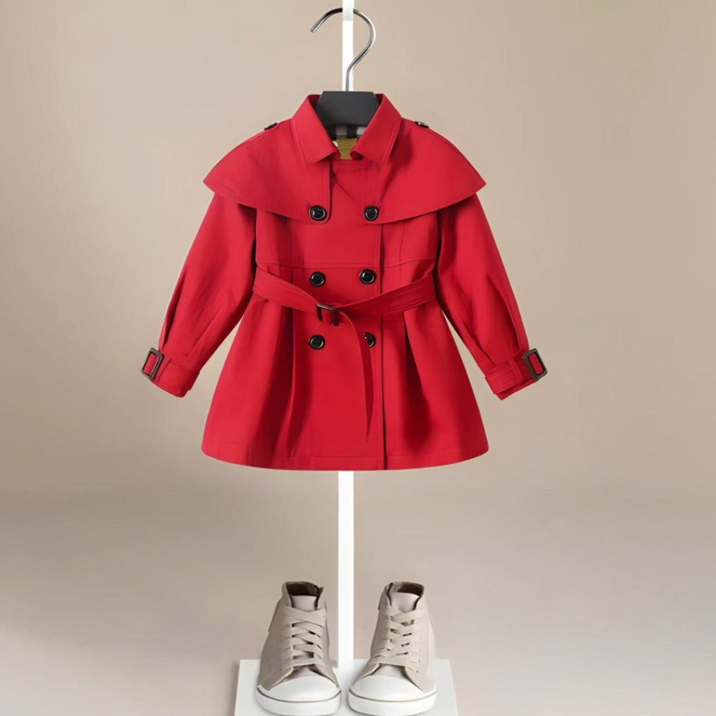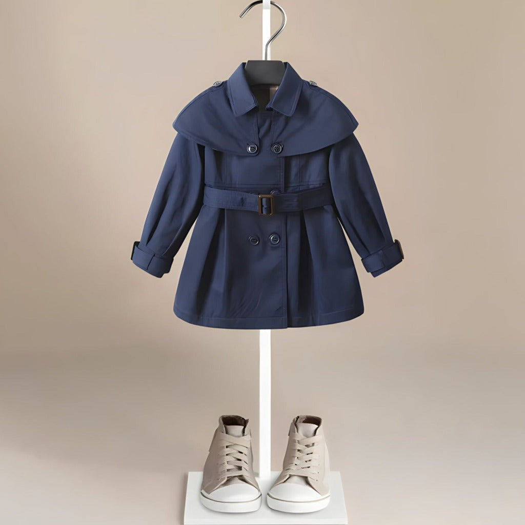 Size and Fit: Available in various sizes suitable for little girls, the coat is designed to offer a comfortable fit, allowing for ease of movement while maintaining its stylish form.
